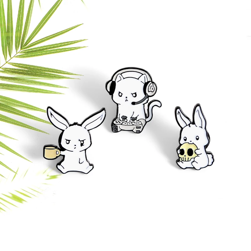 Кролики, булавки, Череп, чашка для напитков, для киберспорта, для игр, белый кролик, животные, броши, мини металлический значок, булавка, кнопка, подарки для женщин и мужчин