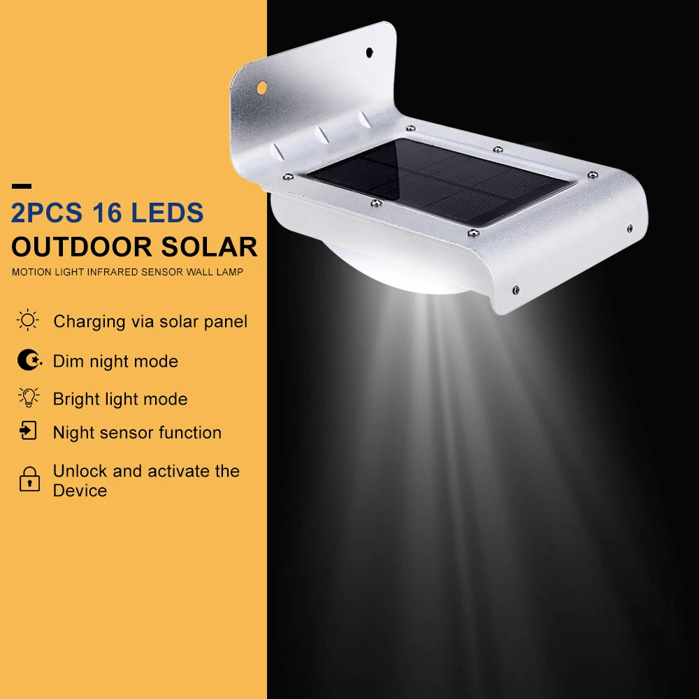 2 шт., 16 светодиодов, уличный солнечный светильник, энергосберегающий инфракрасный датчик, настенные солнечные лампы для сада, уличного двора, ступени, лестницы
