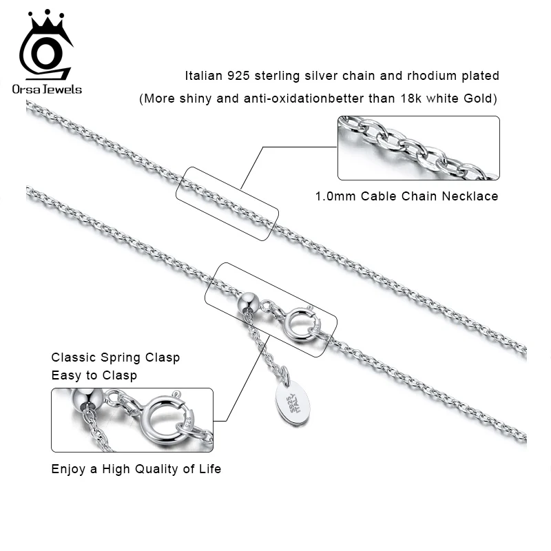 ORSA JEWELS, Италия, серебро 925 пробы, регулируемая цепочка 1 мм, цепочка на кабеле, Ожерелье 45 см, серебряный цвет, ювелирные изделия, подарок, оптовая продажа OSC06-D