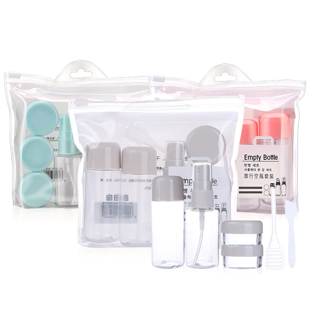 Набор из 8 предметов для путешествий, герметичный многоразовый контейнер для туалетных принадлежностей, спрей для шампуня, бутылочки для косметики, отправляются случайные цвета