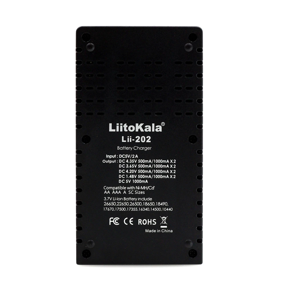 Эта оплата предназначен только для зарядки Цилиндрический литий-ионный аккумулятор (3,7 V, 3,8 V), никель-металл-гидридный/никель-кадмиевый, LiFePO4 (li-ion) аккумуляторов.