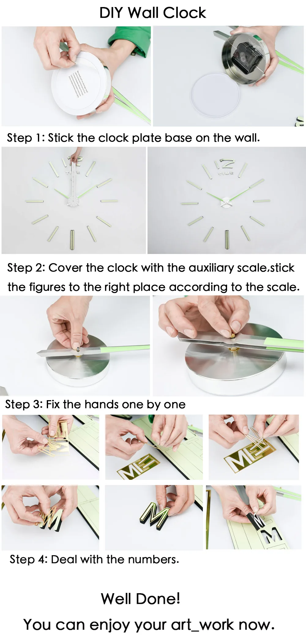 Размер: 27 дюймов, 37 дюймов, 47 дюймов (это всего лишь ссылка, вы можете свободно регулировать размер)Толщина: 1,1 смЦвет: черный, серебряный, золотой, светящийся,Второе движениеМатериал: цифры (база EVA, Акриловая поверхность), металлическая указка.Что касается стиля света, то сначала нужен светильник или Дневной светильник, затем световой эффект появится в темноте 8 часов