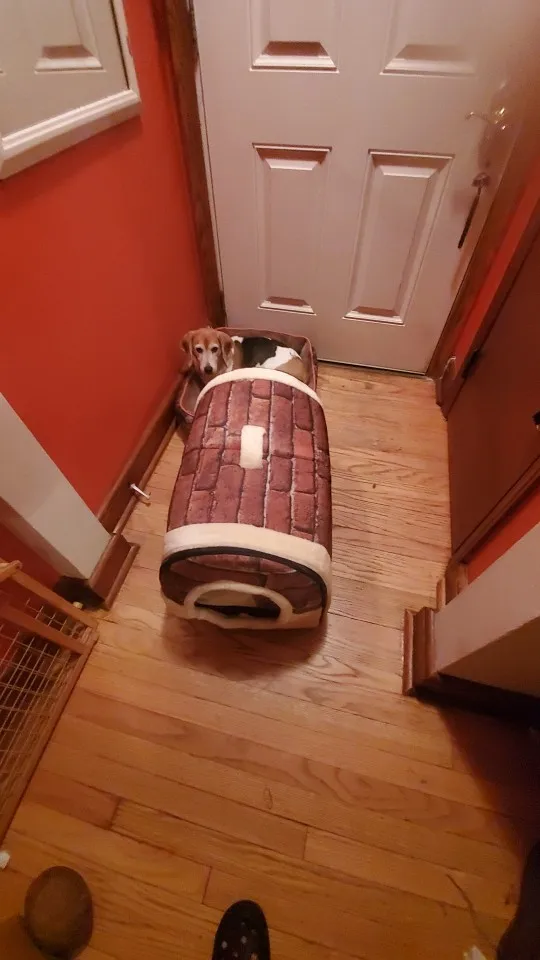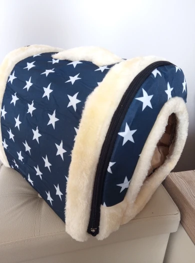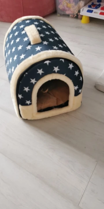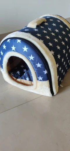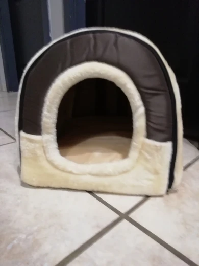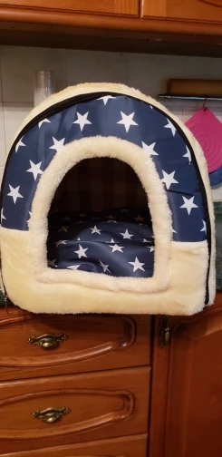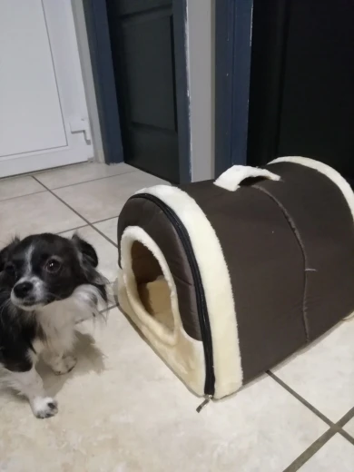 Высокое качество ткани, легко установить с двумя молниями, но крыша собачьего дома не достаточно жесткая (или жесткая), поэтому она не может быть такой, как описано на фотографии, поэтому я немного разочарован, тем более, что доставка была кошмаром (из-за французского перевозчика). Его легко мыть, и подушка очень мягкая... Мой дасхунд любит это...