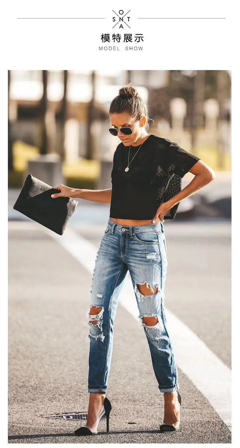 Женские рваные джинсы, облегающие джинсы со средней талией, лето 2020, джинсовые брюки-карандаш