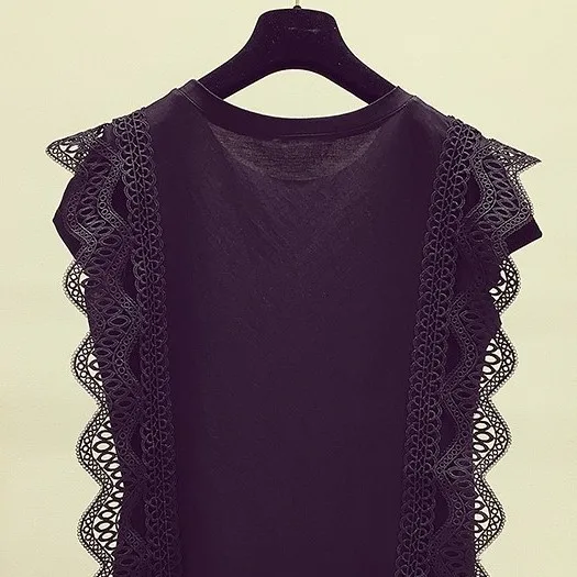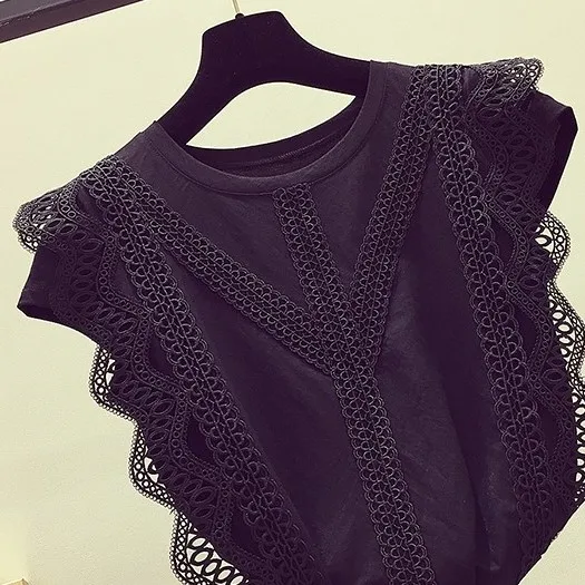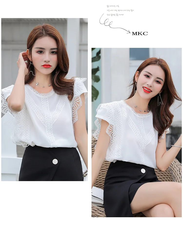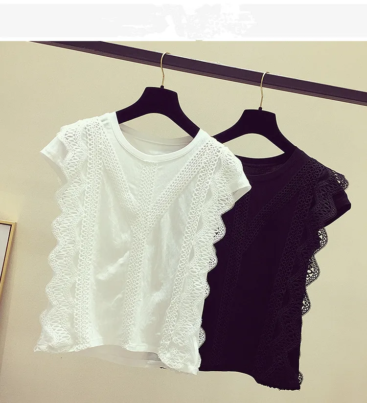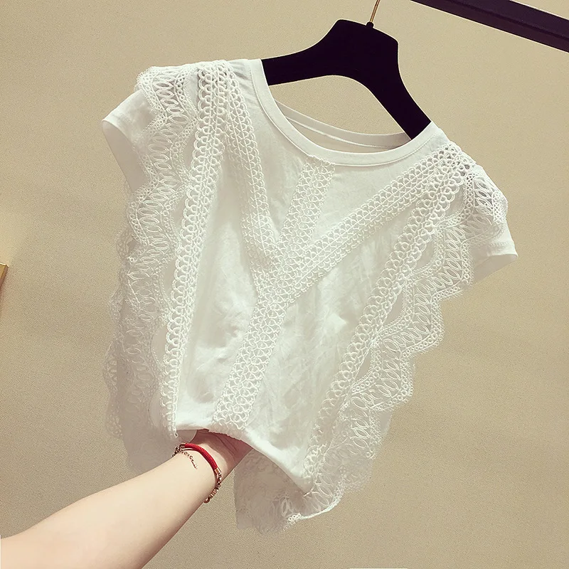Новинка лета 2020, модная женская блузка с коротким рукавом, круглым вырезом и кружевом, повседневные женские топы