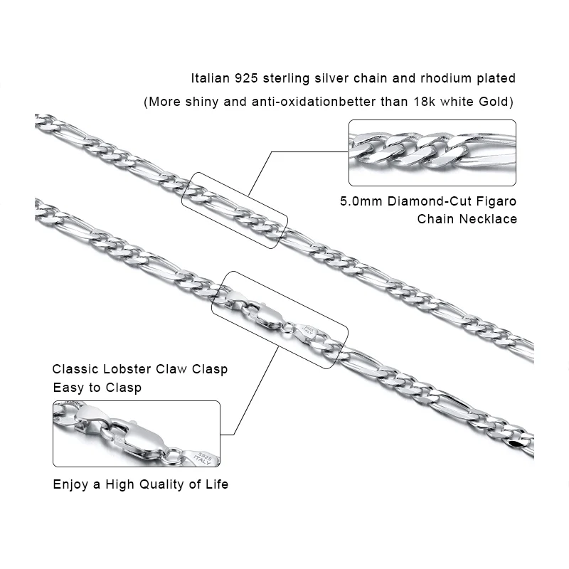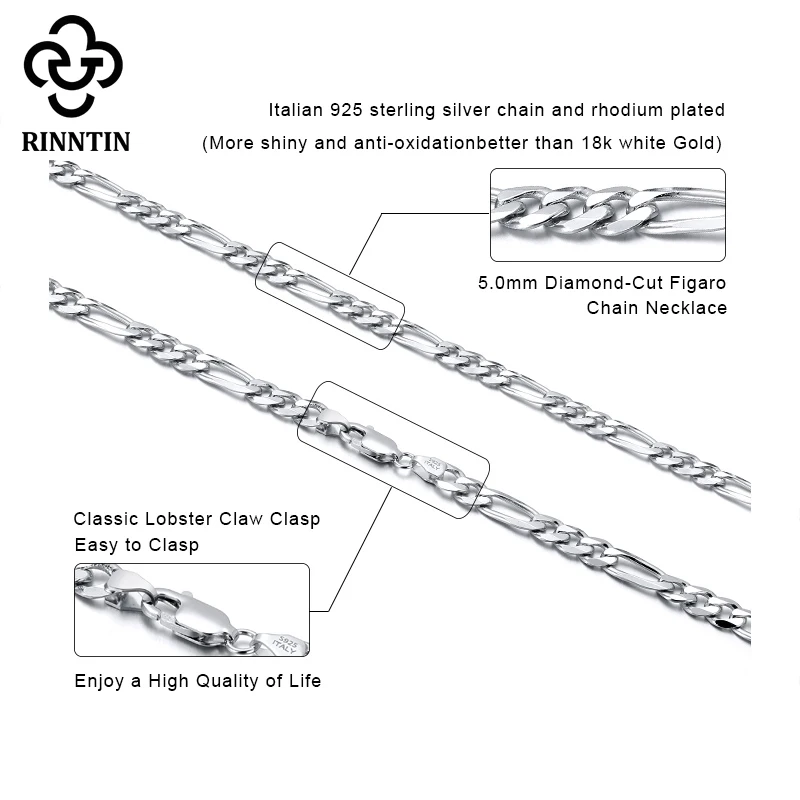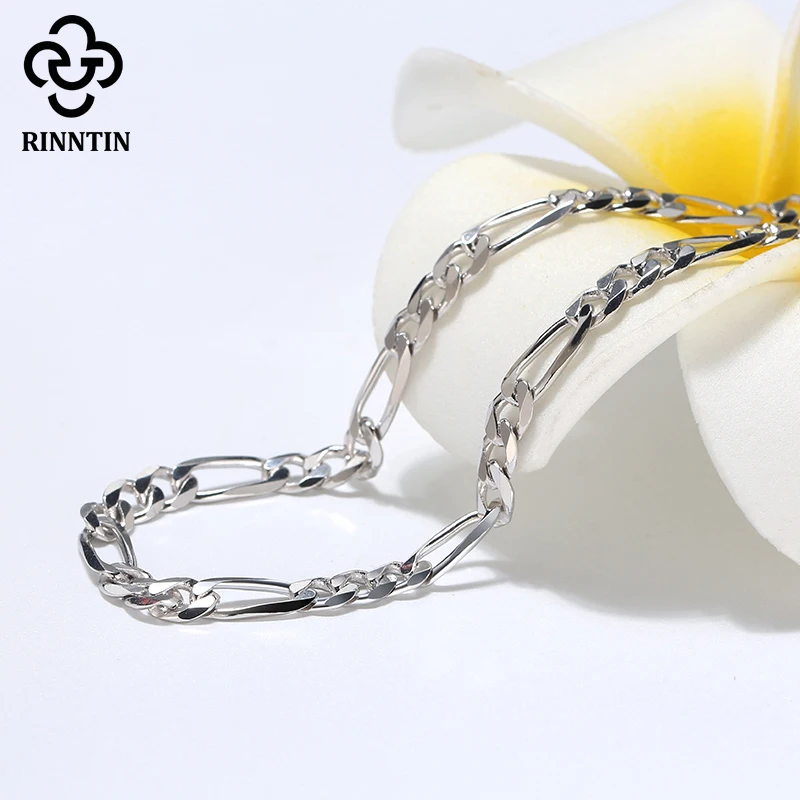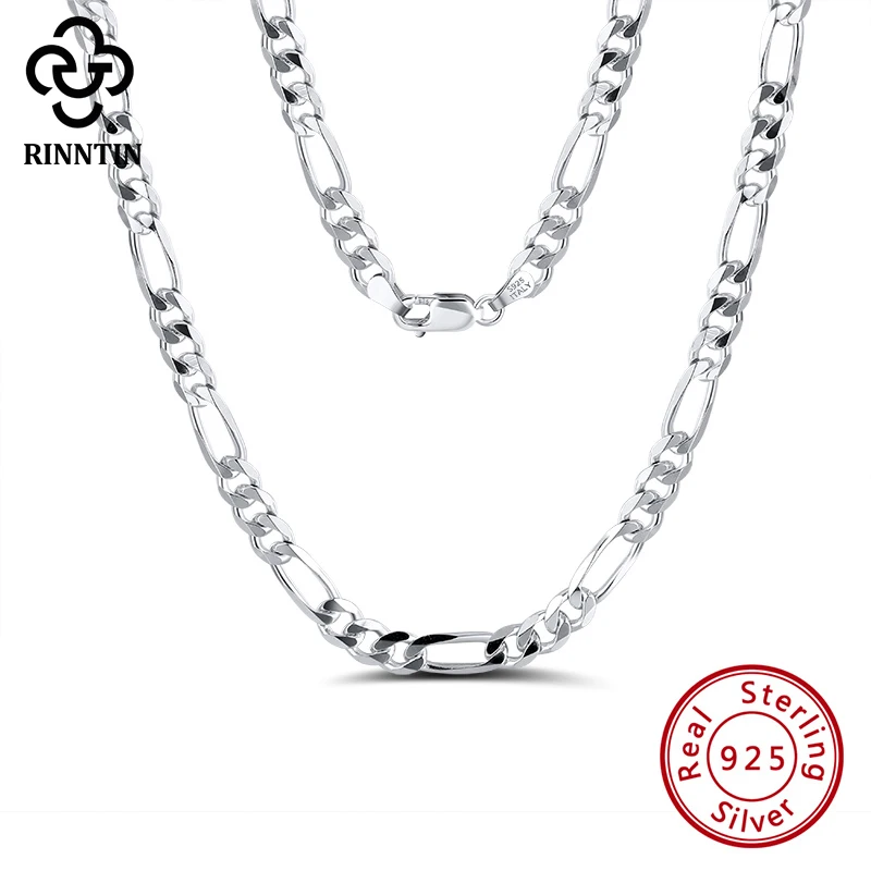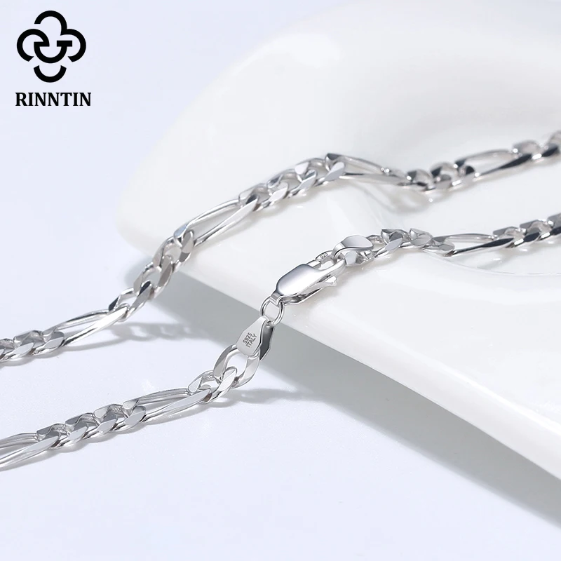 Rinntin S925 серебро 5,0 мм с алмазной огранкой Фигаро длинное ожерелье для мужчин и женщин в Кубинском стиле браслет толстая цепочка 40-60 см, хорошее ювелирное изделие, SC34