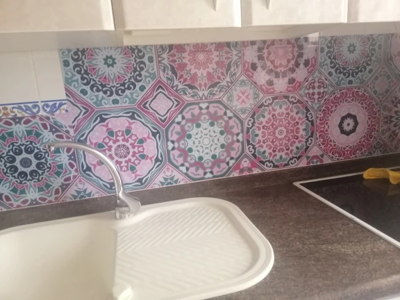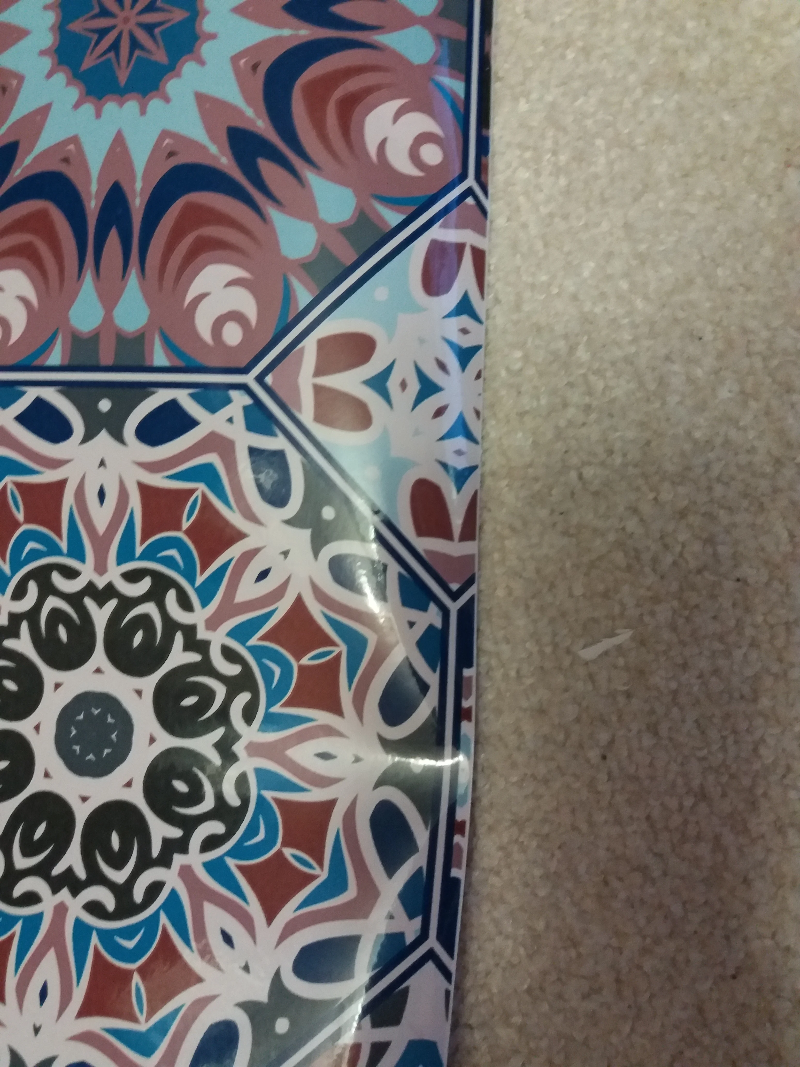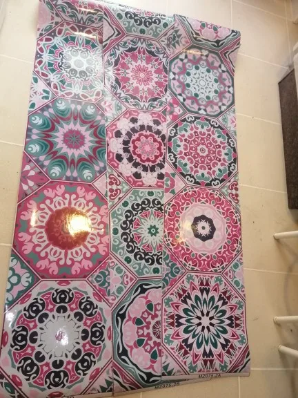 Я заказывала 6 вариантов- именно этот вариант достался мне неровно обрезаным, брак при отрезе. Очень жаль. Продавцу надо быть более внимательным, аккуратней вырезать квадратные полосы. Получается полоса на выброс, деньги на ветер!????