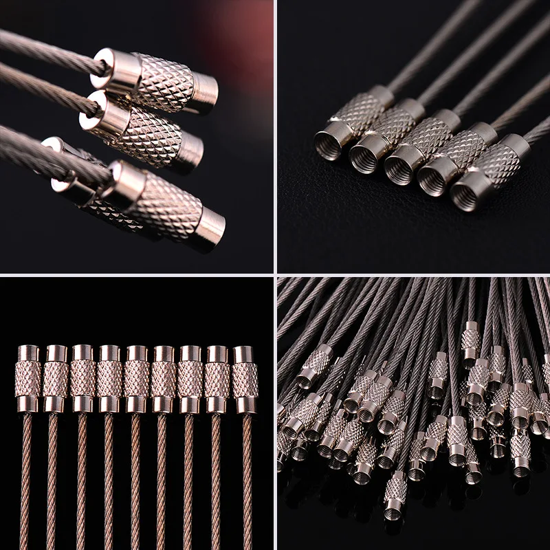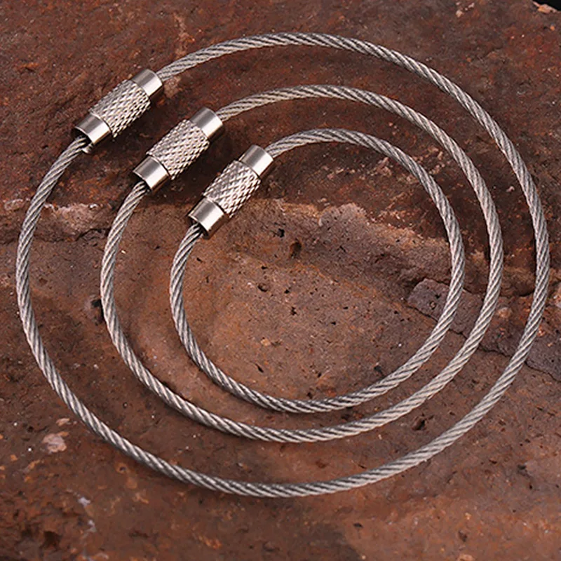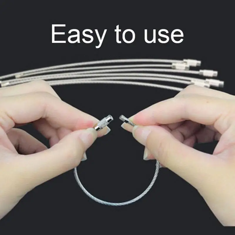 10 шт.компл. 100150200 мм брелок для ключей из нержавеющей стали EDC проволока кабель петля винт устройство блокировки кольцо брелок DIY ручные инструменты