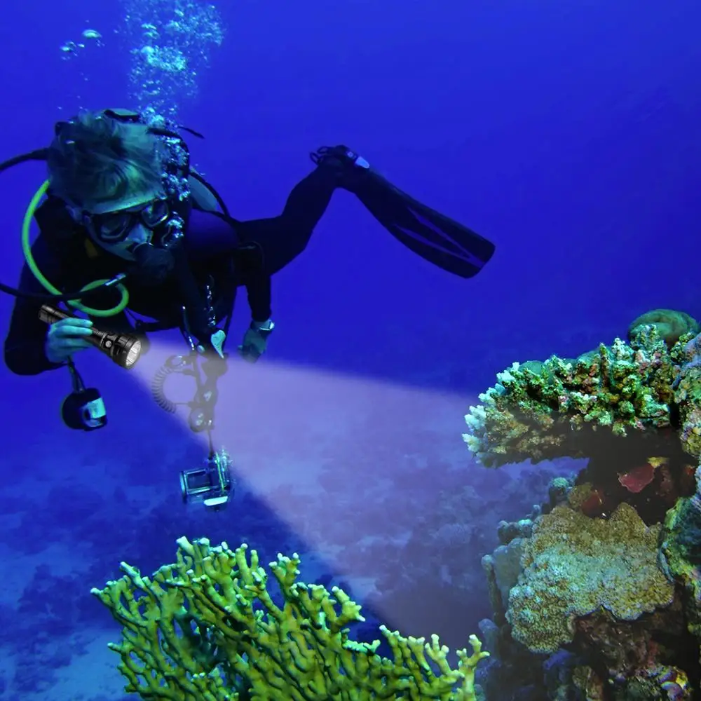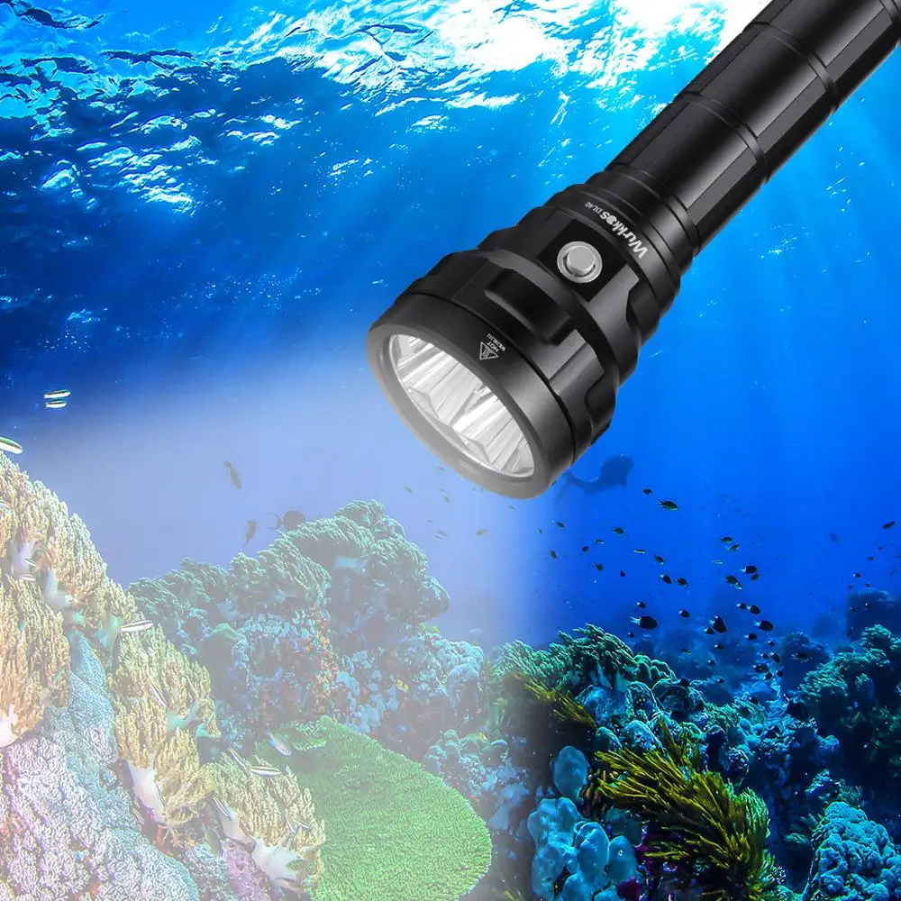 Подводный фонарик DL40, мощный фонарь для дайвинга лм, светодиодный, IPX8, водонепроницаемый, для подводного плавания