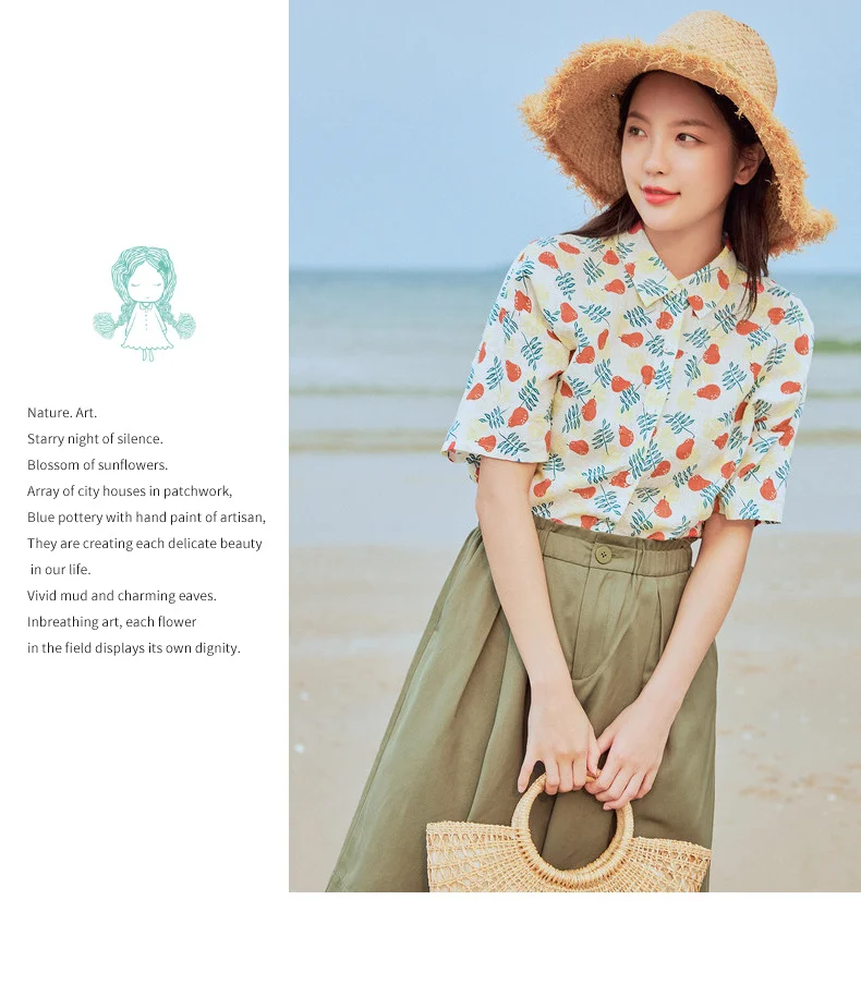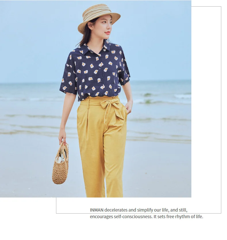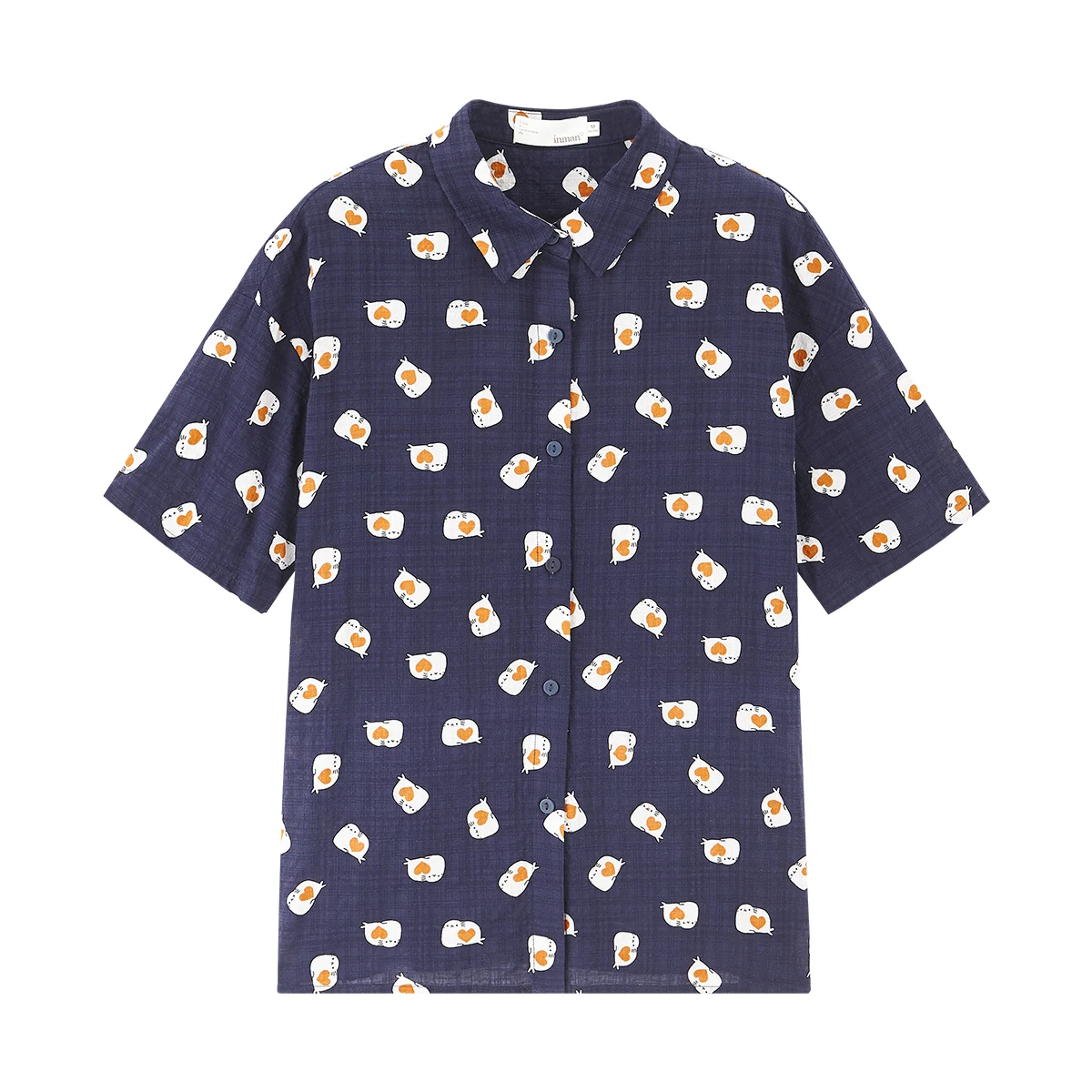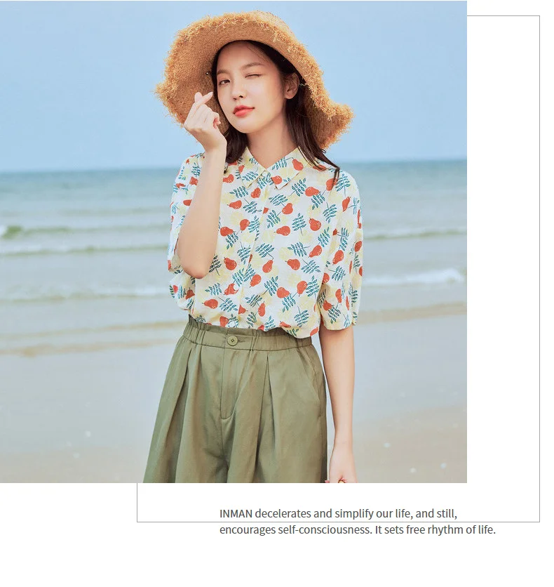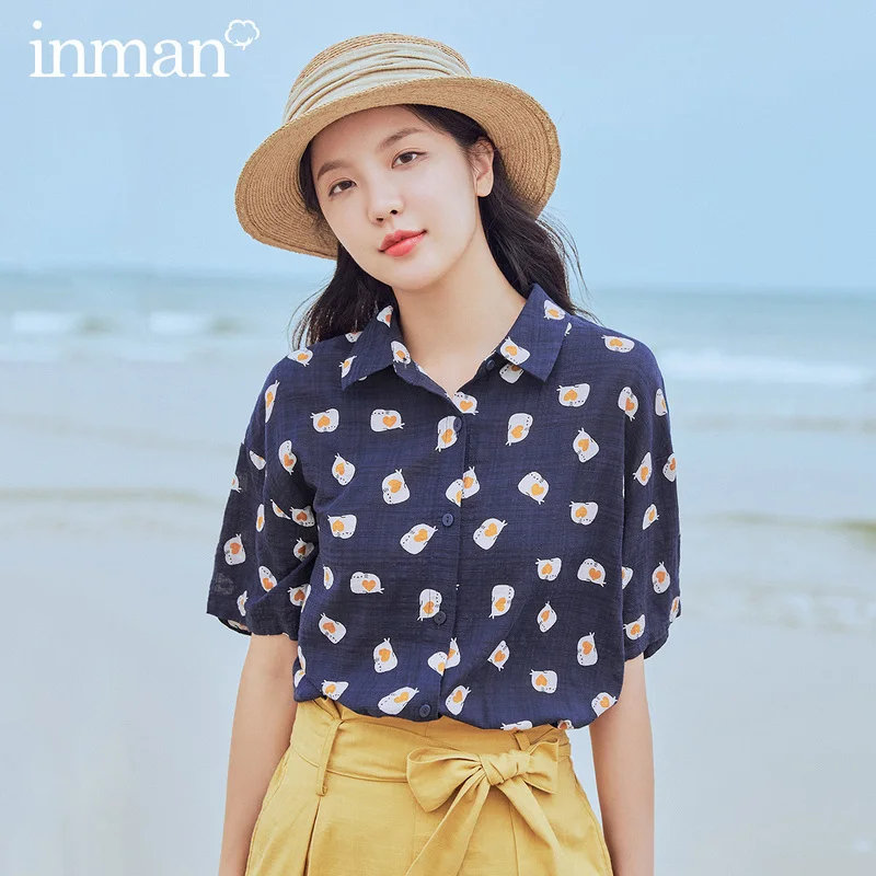 Блузка с коротким рукавом, с отложным воротником и забавным винтажным принтом в гонконгском стиле, свободная, лето INMAN