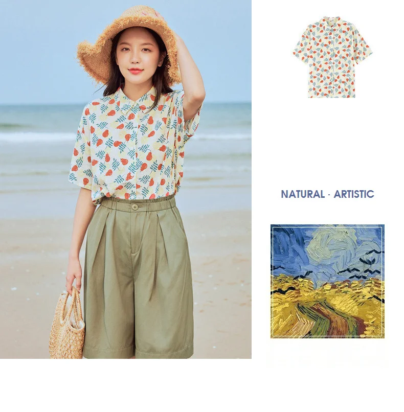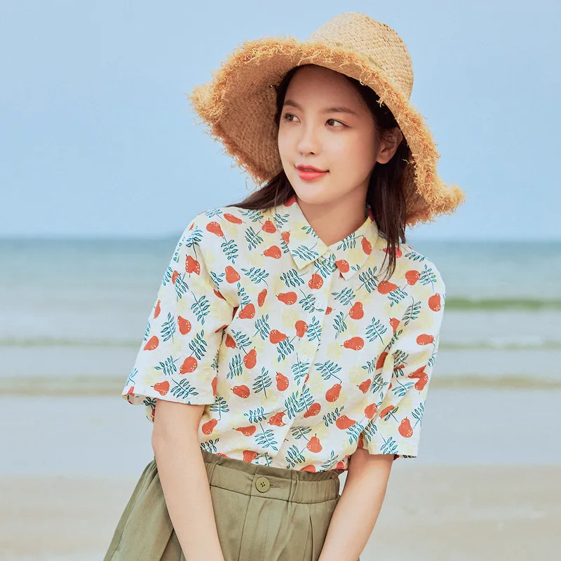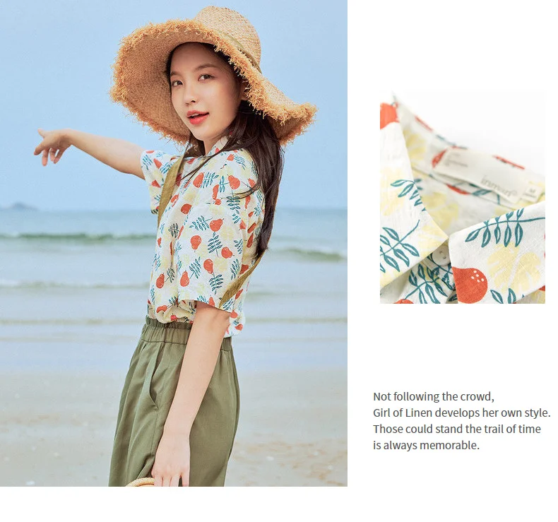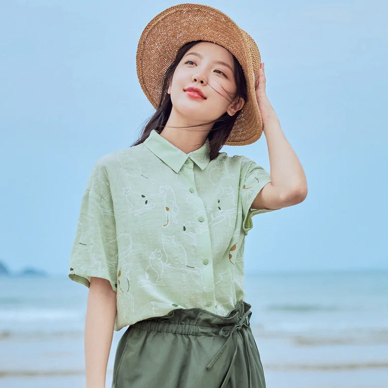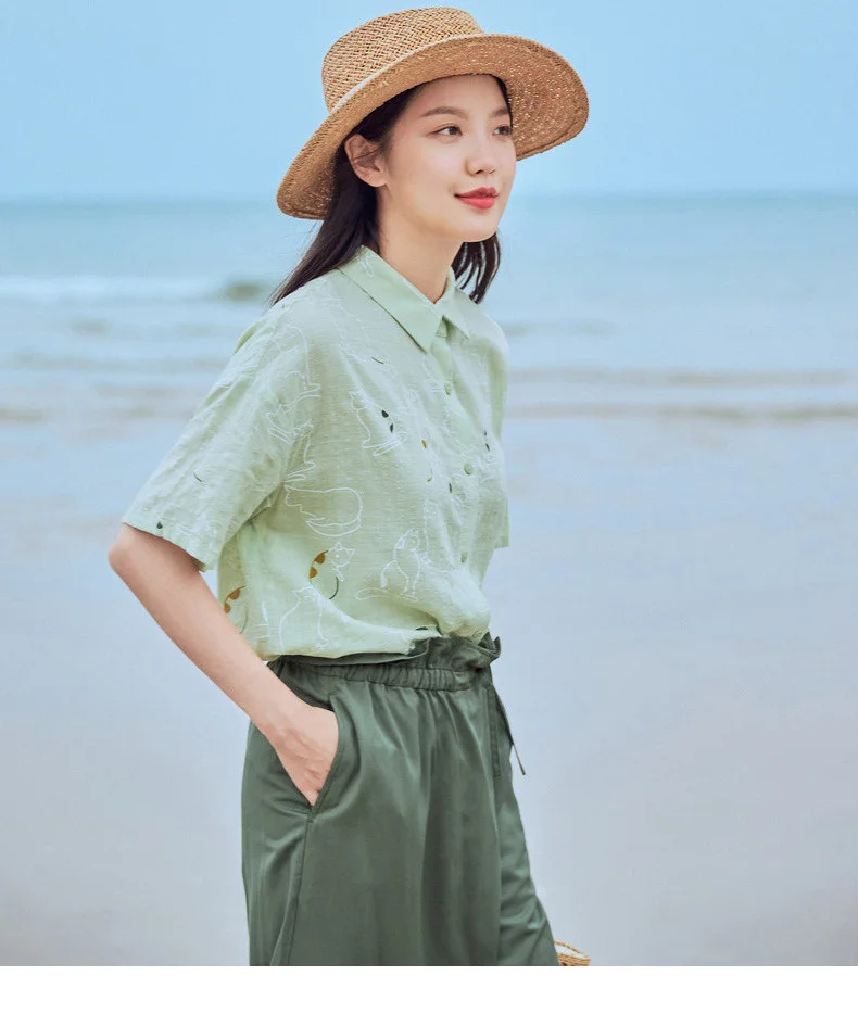 Блузка с коротким рукавом, с отложным воротником и забавным винтажным принтом в гонконгском стиле, свободная, лето INMAN