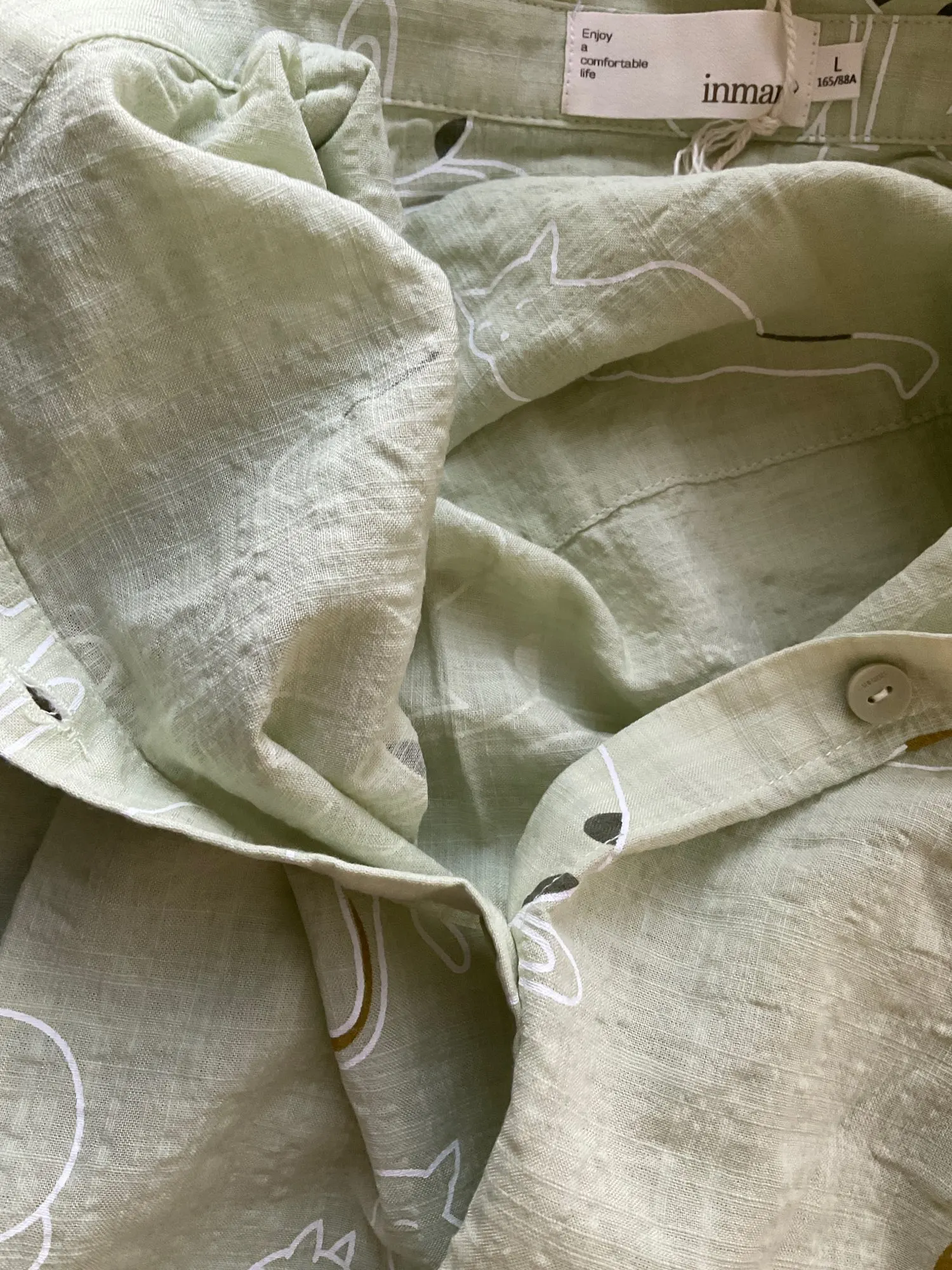 Рубашка ок. Размер L в самый раз на обхват груди 85, обхват талии 74 см, свободно. Тонкая, лёгкая, но не прозрачная. Хлопок. На рост 170 длина оптимальна.