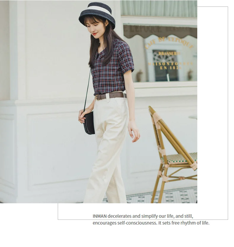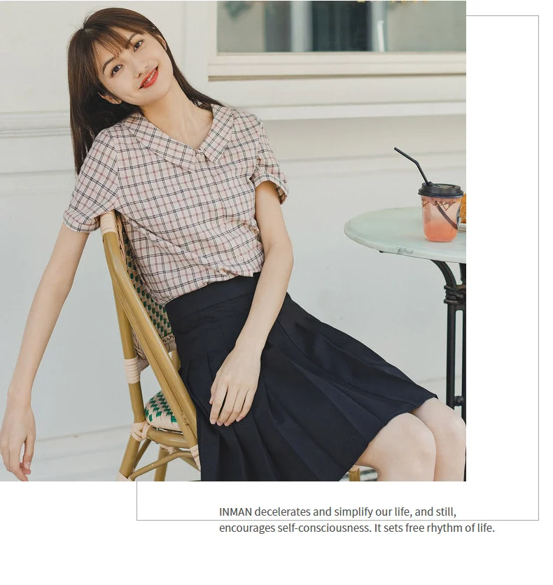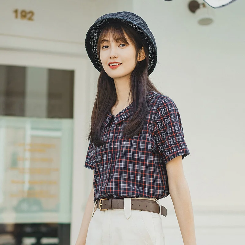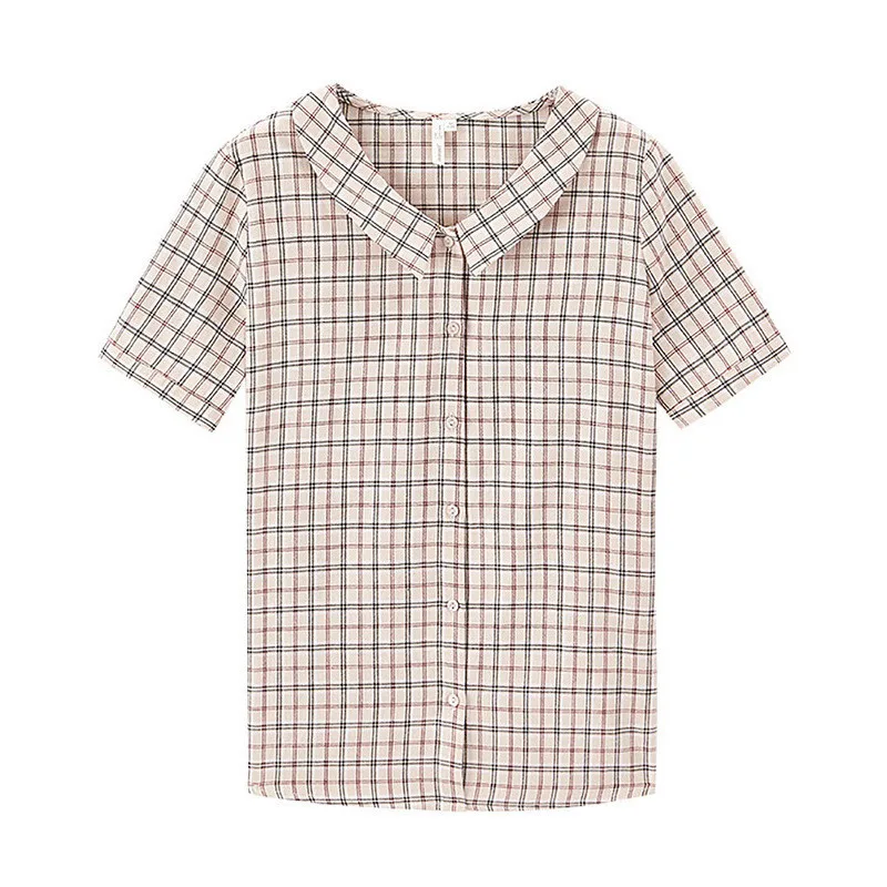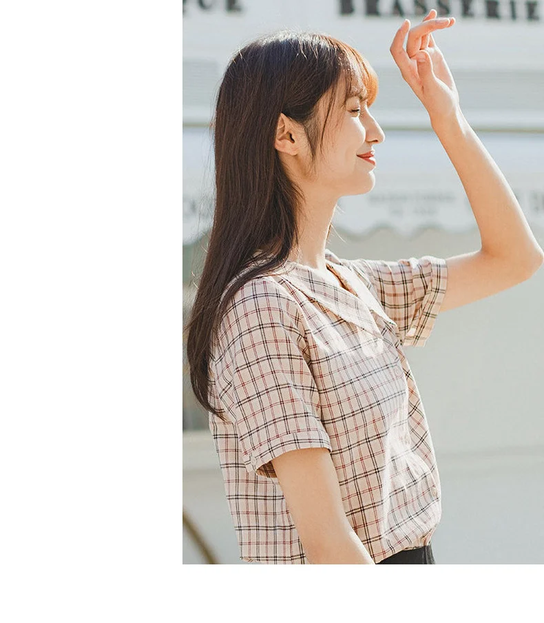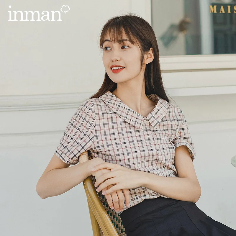 Летняя хлопковая блузка для девочек, с отложным воротником, винтажный клетчатый узор, Новое поступление, inman