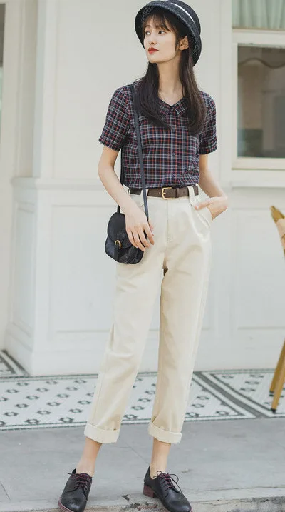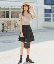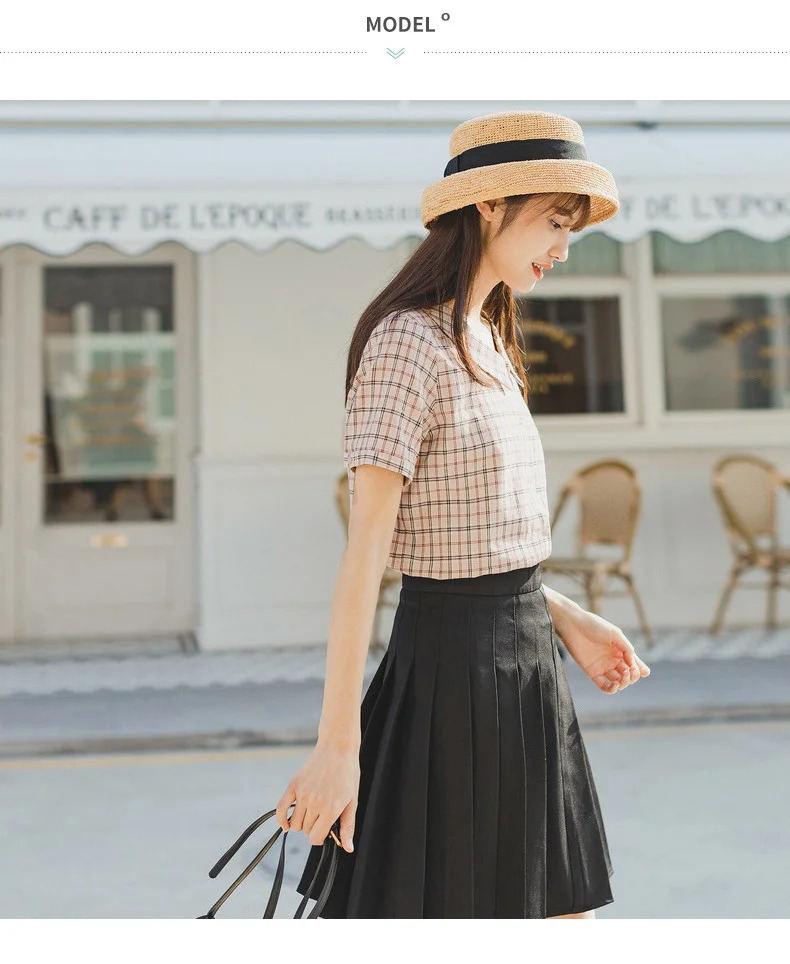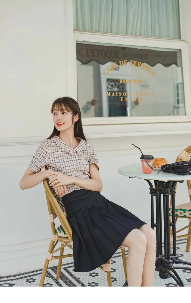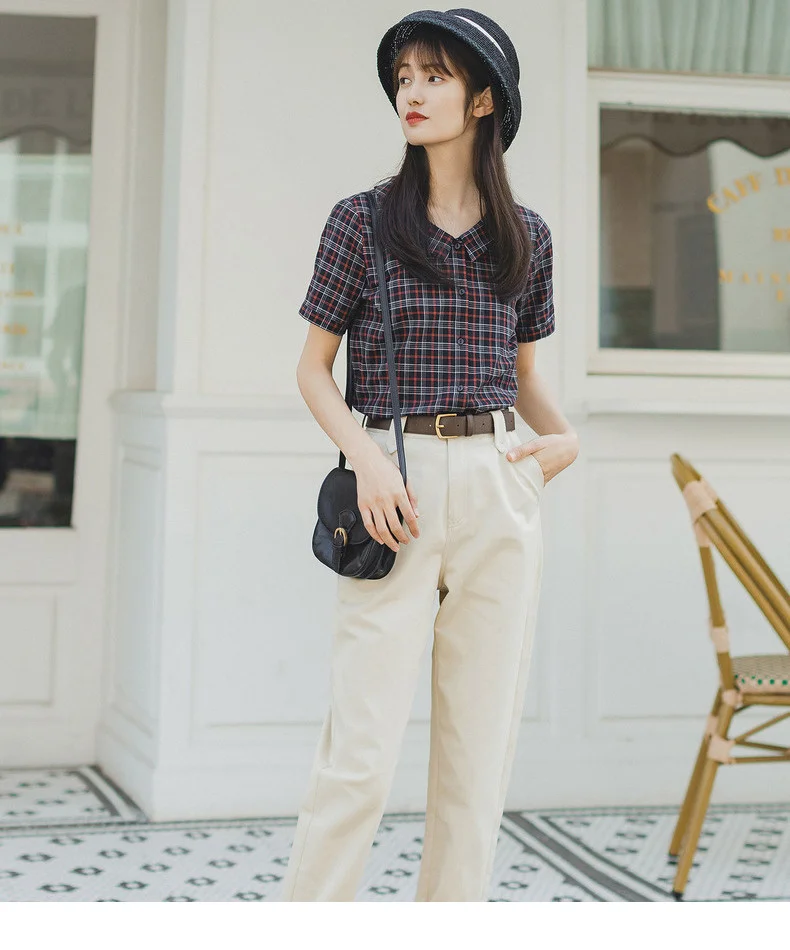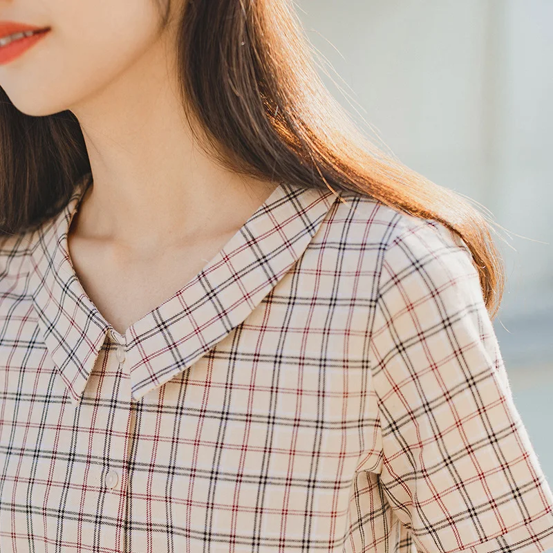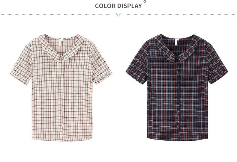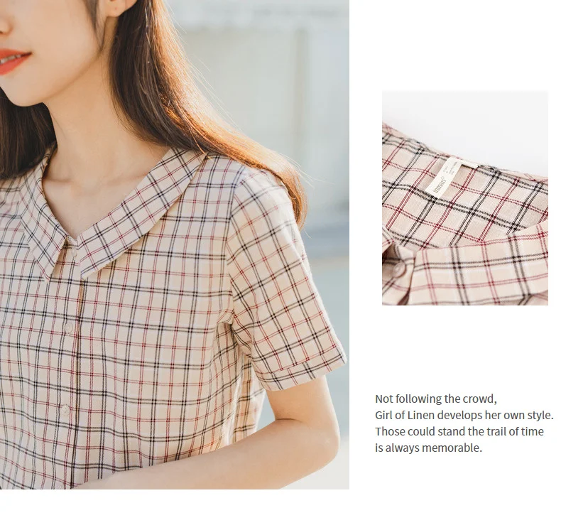 Летняя хлопковая блузка для девочек, с отложным воротником, винтажный клетчатый узор, Новое поступление, inman