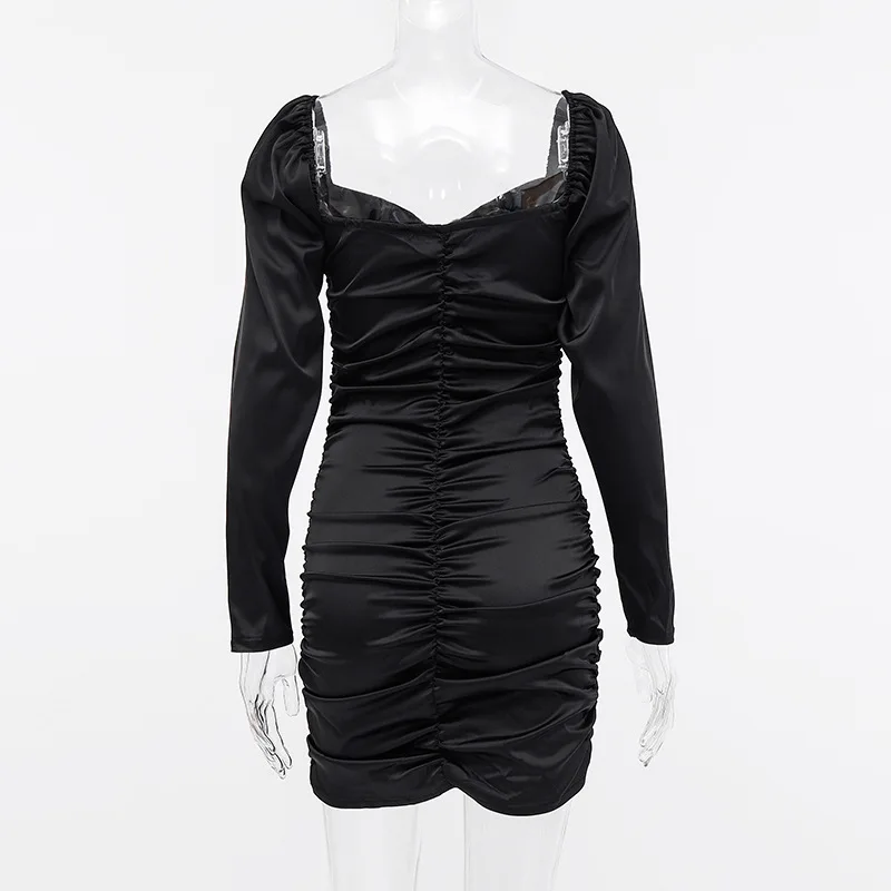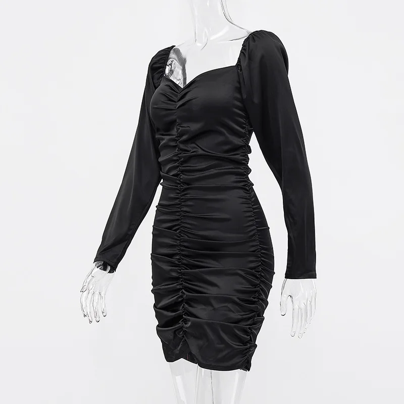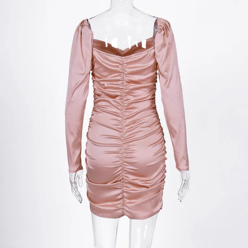 Женское атласное мини-платье, однотонное Плиссированное однотонное ...