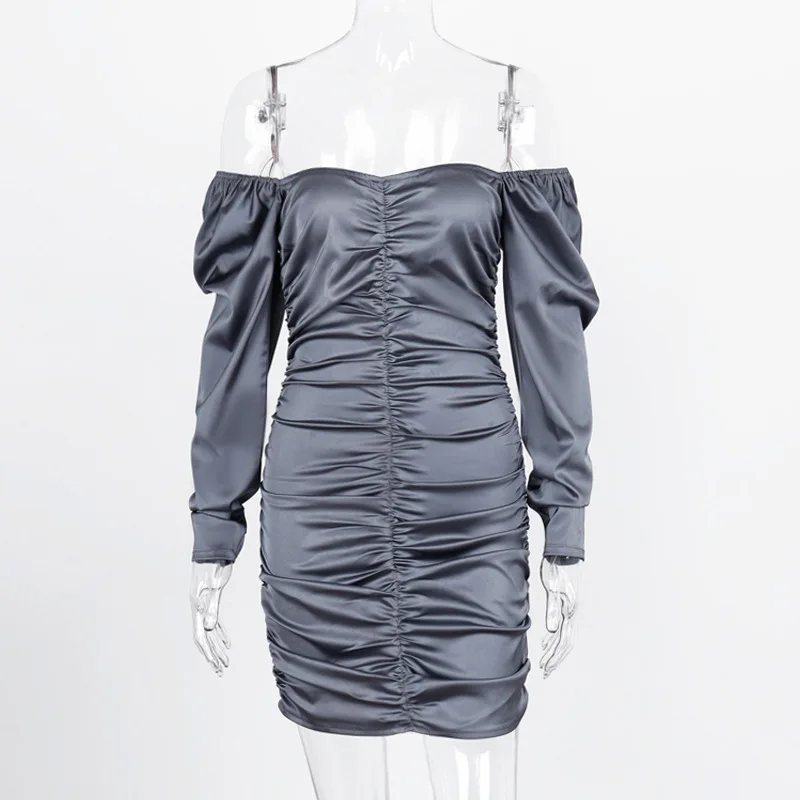 Зимний стиль 2020 Новое поступление сексуальное платье трикотажное с открытыми плечами Длинным Рукавом Плиссированное однотонное элегантное вечернее платье