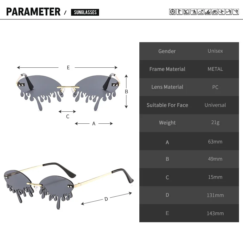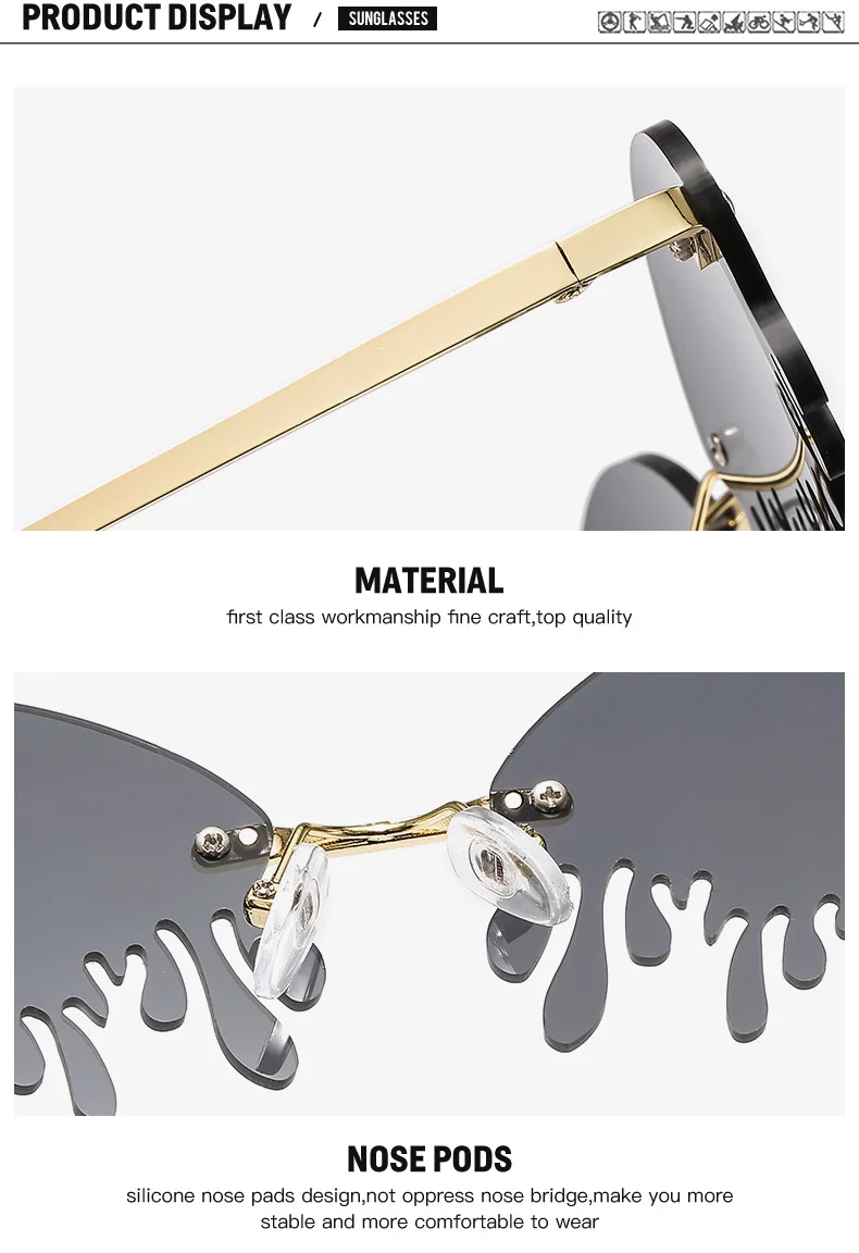 Солнцезащитные очки женские, без оправы, винтажные, в форме слезы, ...