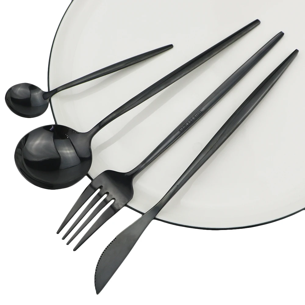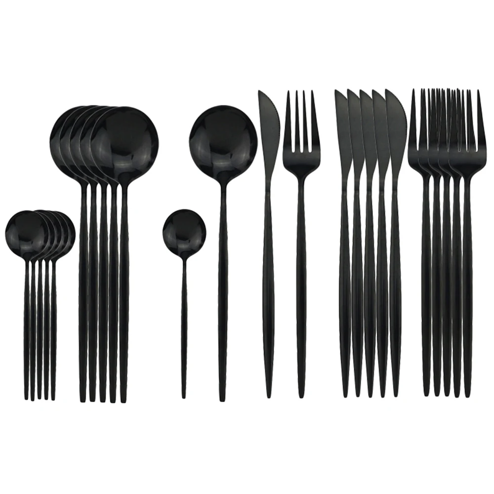 Набор столовых приборов из нержавеющей стали, черного цвета, 24 шт.