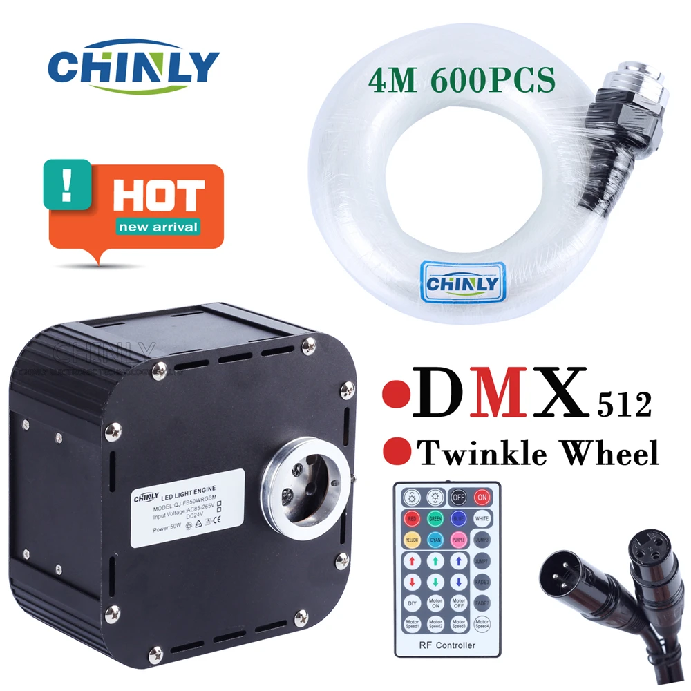 Светодиодные мигающие волоконно-оптические фонари, 50 Вт, RGBW, DMX, 512, с поддержкой RF пульта дистанционного управления, Звездный потолок освещения, 600 шт., 4 м