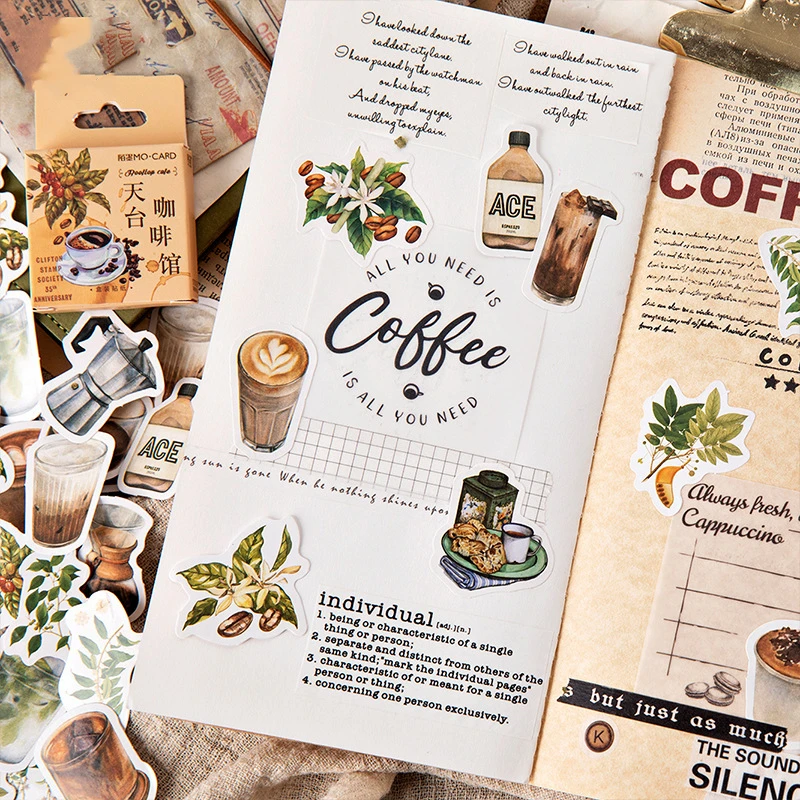 45 шт.упак. Винтаж на крыше Кофе магазин Набор наклеек Скрапбукинг ...