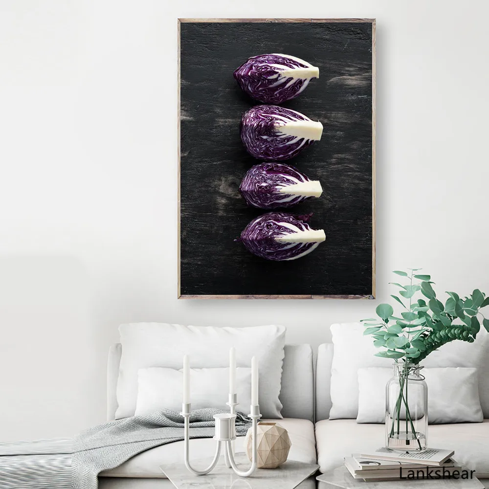 Плакат с черничным пирогом, фиолетовой капустой, овощами, для кухни, холст, постеры и принты, настенные картины с едой, для столовой