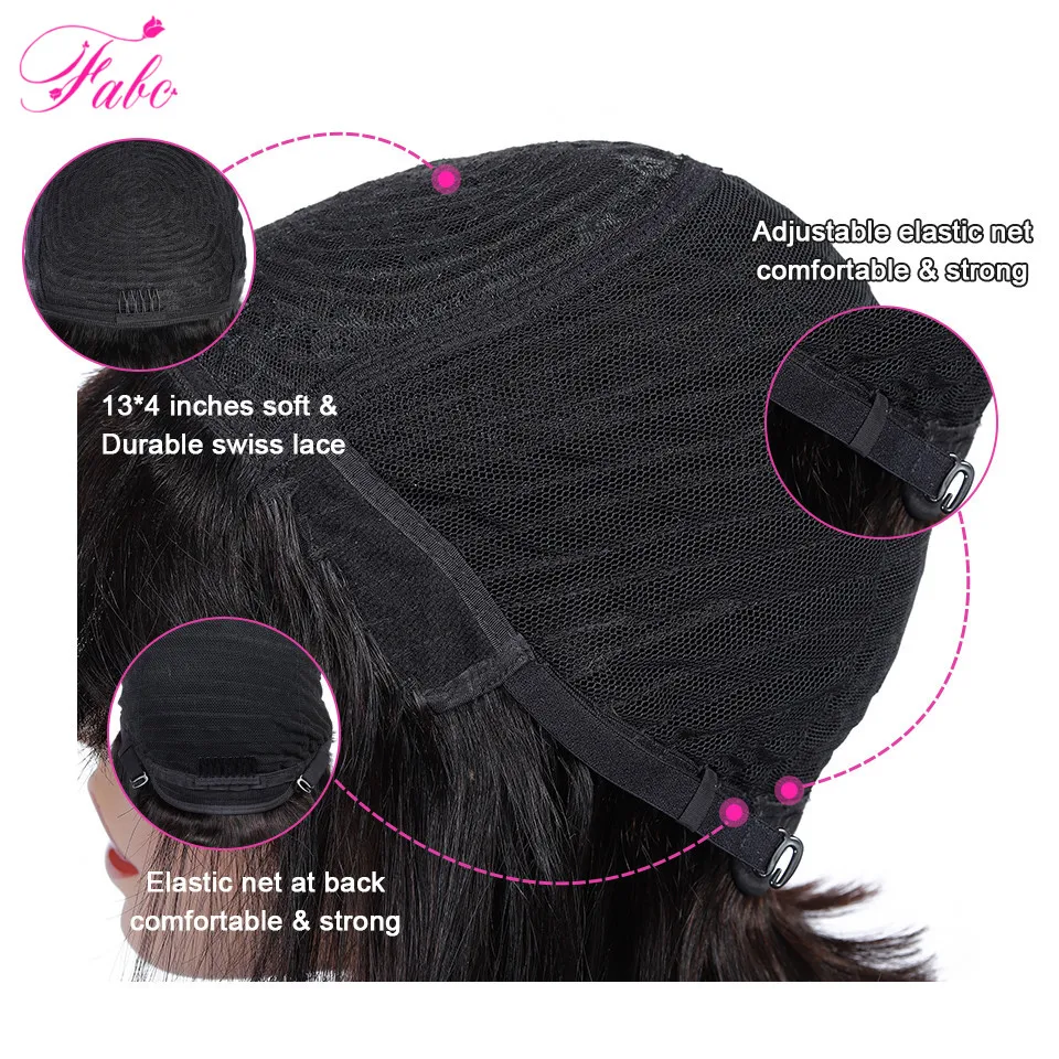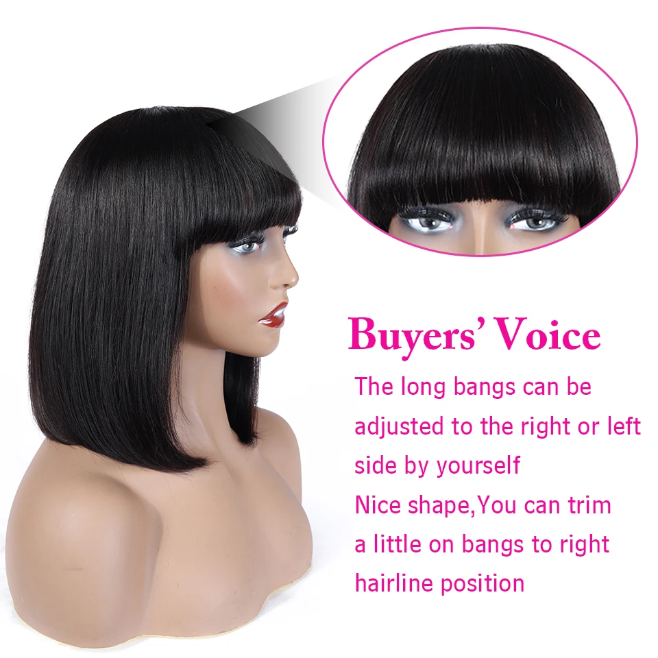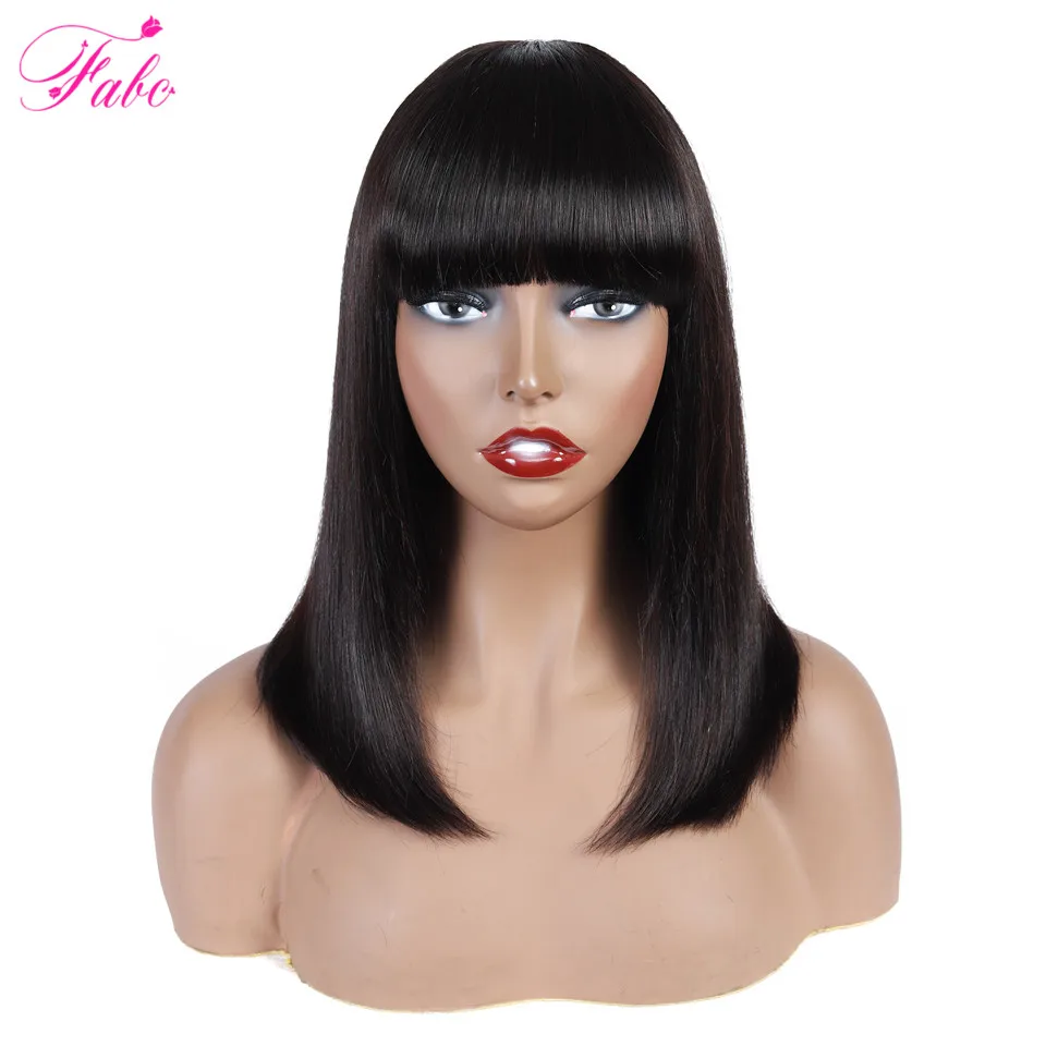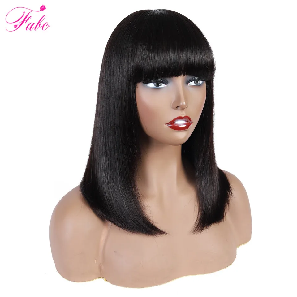 Парики из натуральных волос FABC с челкой для женщин, бразильские прямые короткие парики боб, натуральные черные, плотность 150%, машинное изготовление
