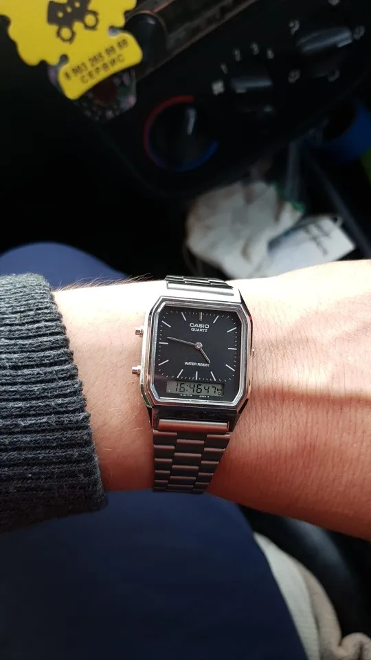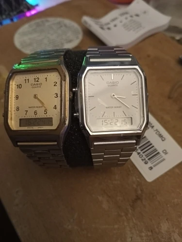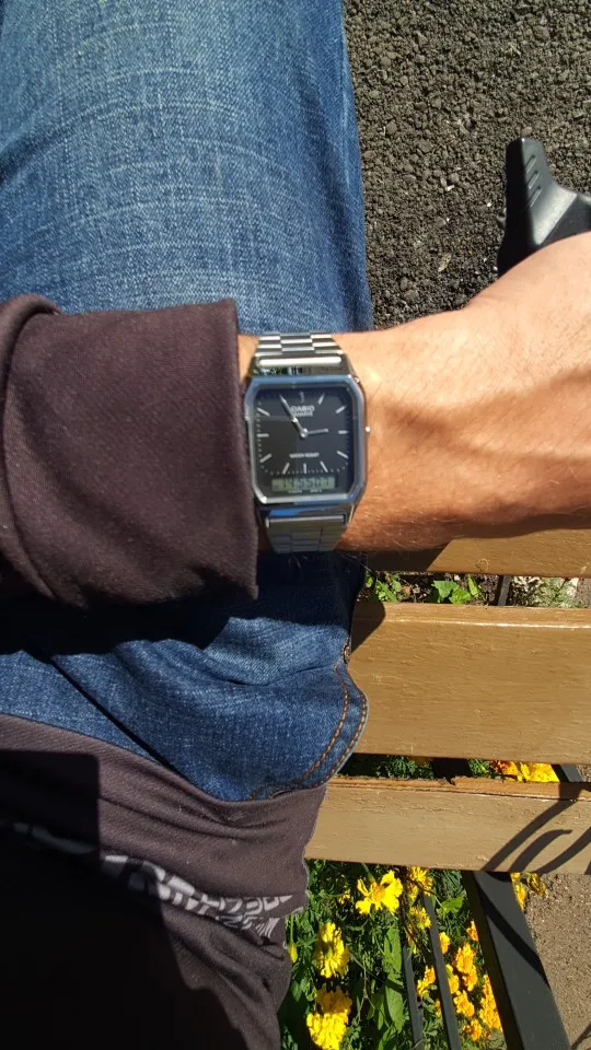 Часы понравились, но оказались меньше и тоньше чем я думал. Корпус и стекло пластик, смотрел обзор на ютюб говорят стекло плексиглас. Настраивал по видео с того же ютюба , настройка легкая. Не хватает в них подсветки хотя бы цифрового циферблата, были бы вообще бомба. Кнопка со стороны кисти руки защищена от непроизвольного нажатия что очень продуманное решение. Советую, не пожалеете.