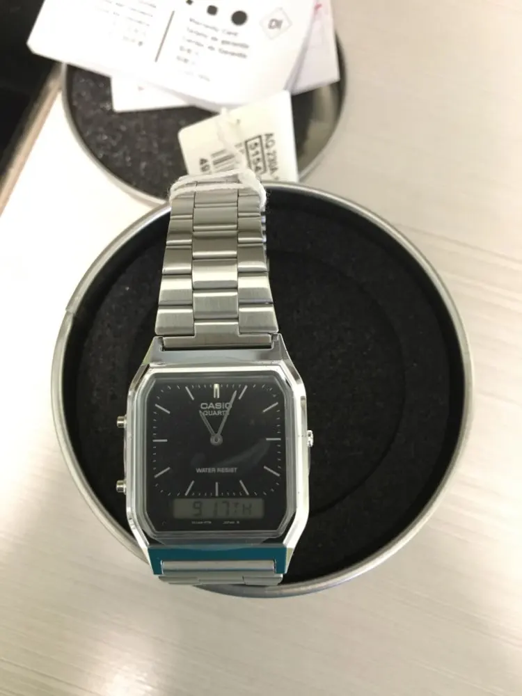 Хорошие не дорогие часы. Вроде бы оригинал. С металической банкой. Покупал сыну на новый год. Пока не дарил. Надеюсь будет доволен. Продавец запаковал часы очень хорошо. Приехали часы очень быстро. Продавец очень вежливый и ответственеый.