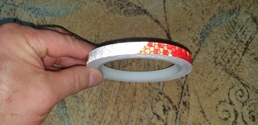 2 месяца шла эта лента. Брал жёлтую, обклеить детям велосипеды. Клеится прочно, испытал на бампере соседского автомобиля. Немножко не ровно наклеил, решил поправить, а прилипло намертво. Сосед всёравно доволен. Отражает отлично. Мне нравится.