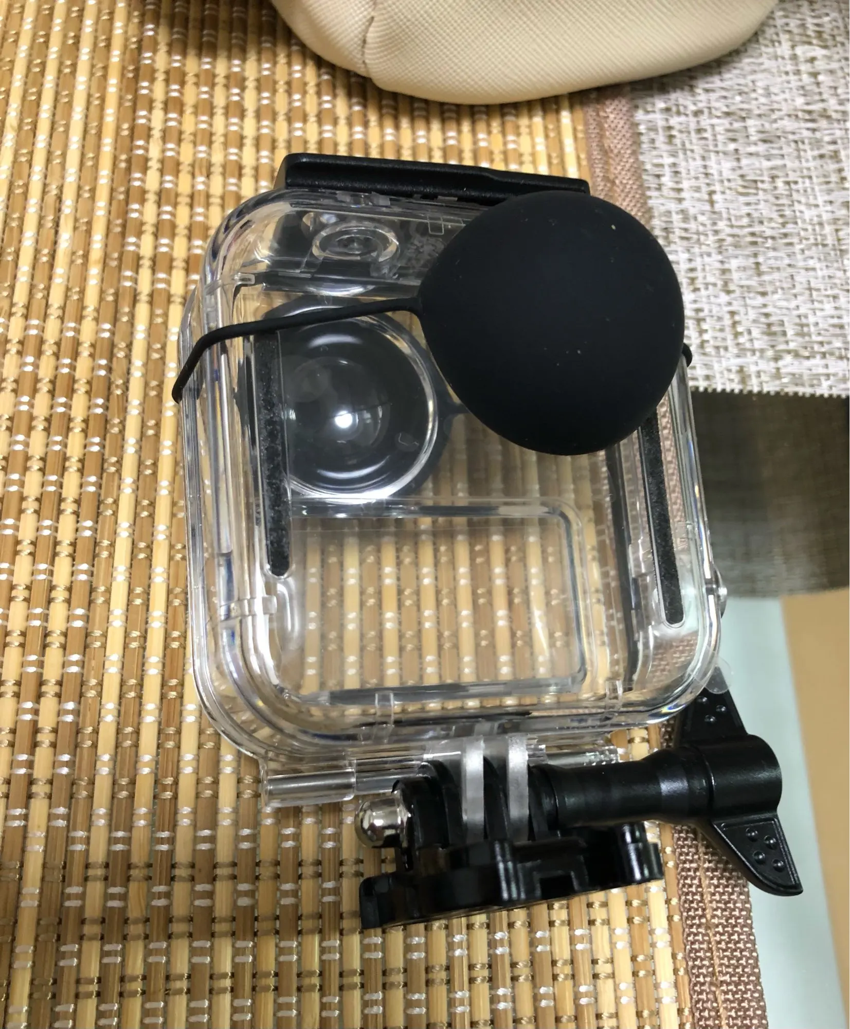 Аквабокс шел больше месяца. Купил для катания на сноуборде. Камера вошла идеально. Тачскрин работает через чехол. 360 снимает без проблем в боксе. Все отлично!