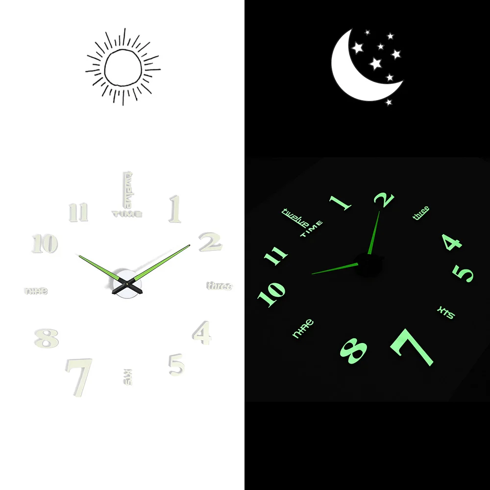 Большие настенные часы с 3d-наклейкой, настенные часы, светящиеся ц...