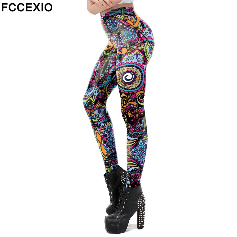 Женские леггинсы FCCEXIO с рисунком мандалы, модные облегающие элас...