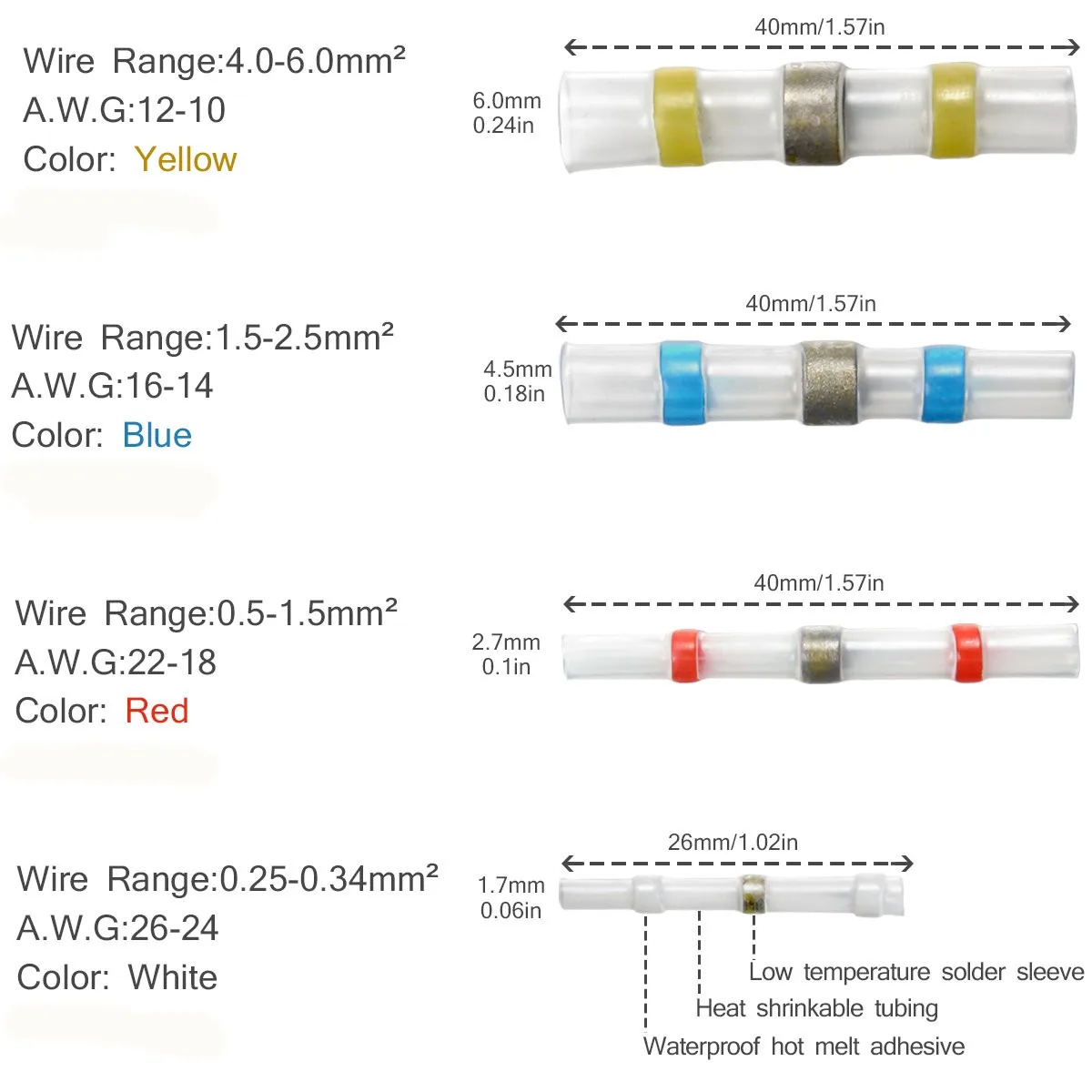 100 шт. водонепроницаемое уплотнение термоусадочный припой провод соединитель усадка припой рукав трубка для мотоцикла автомобиля кабель подключения комплект