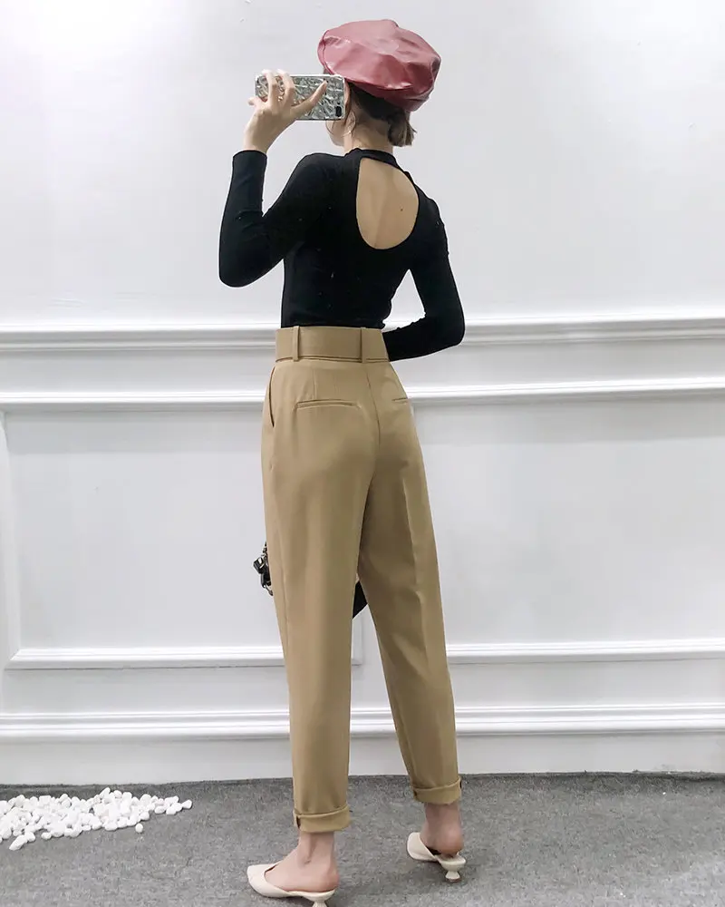 Костюмные брюки DOUJILI, женские офисные штаны с завышенной талией ...