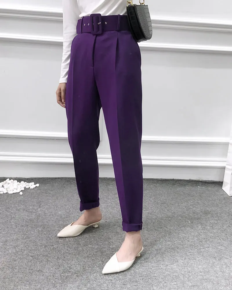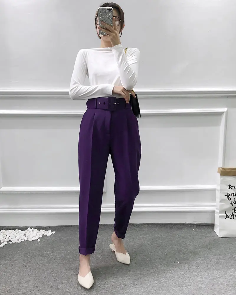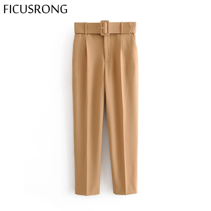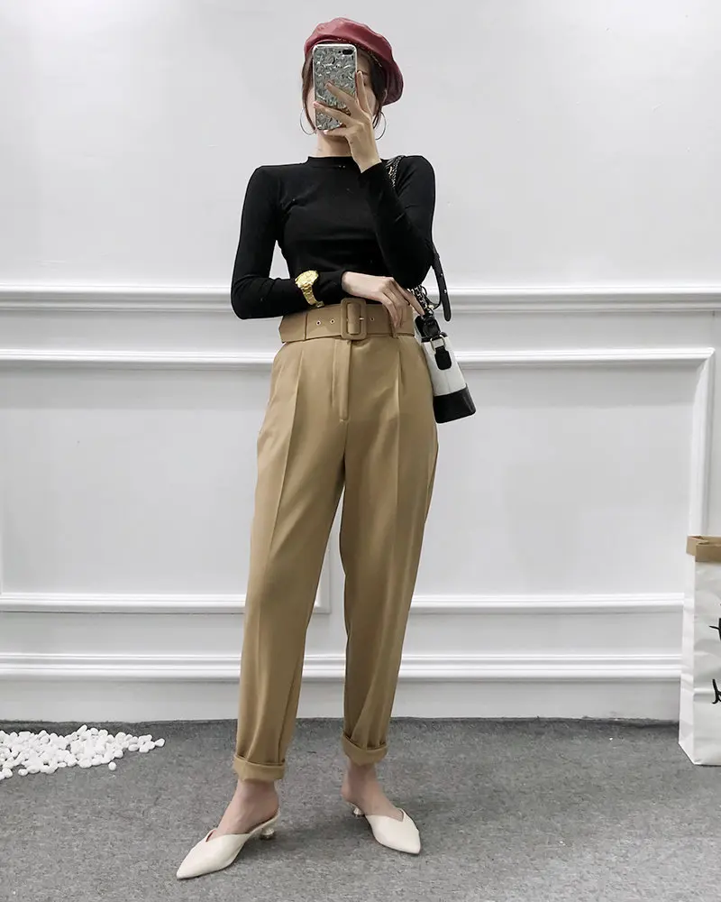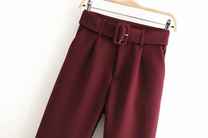 Брюки женские, однотонные, с поясом, в стиле ретро, P575