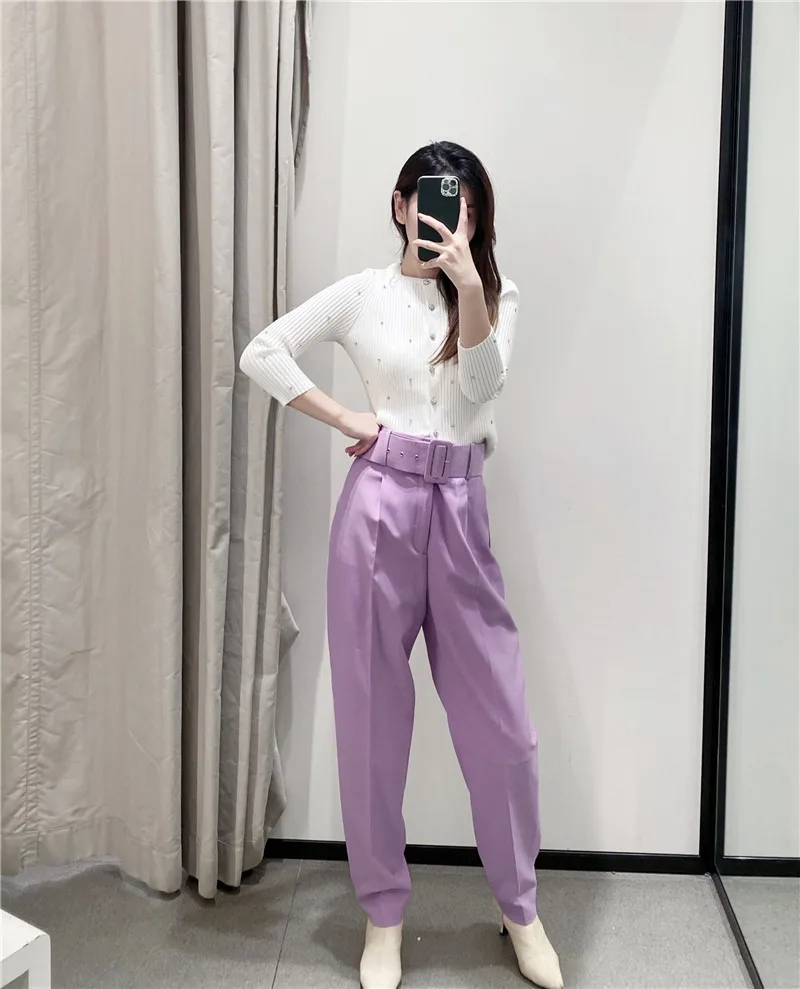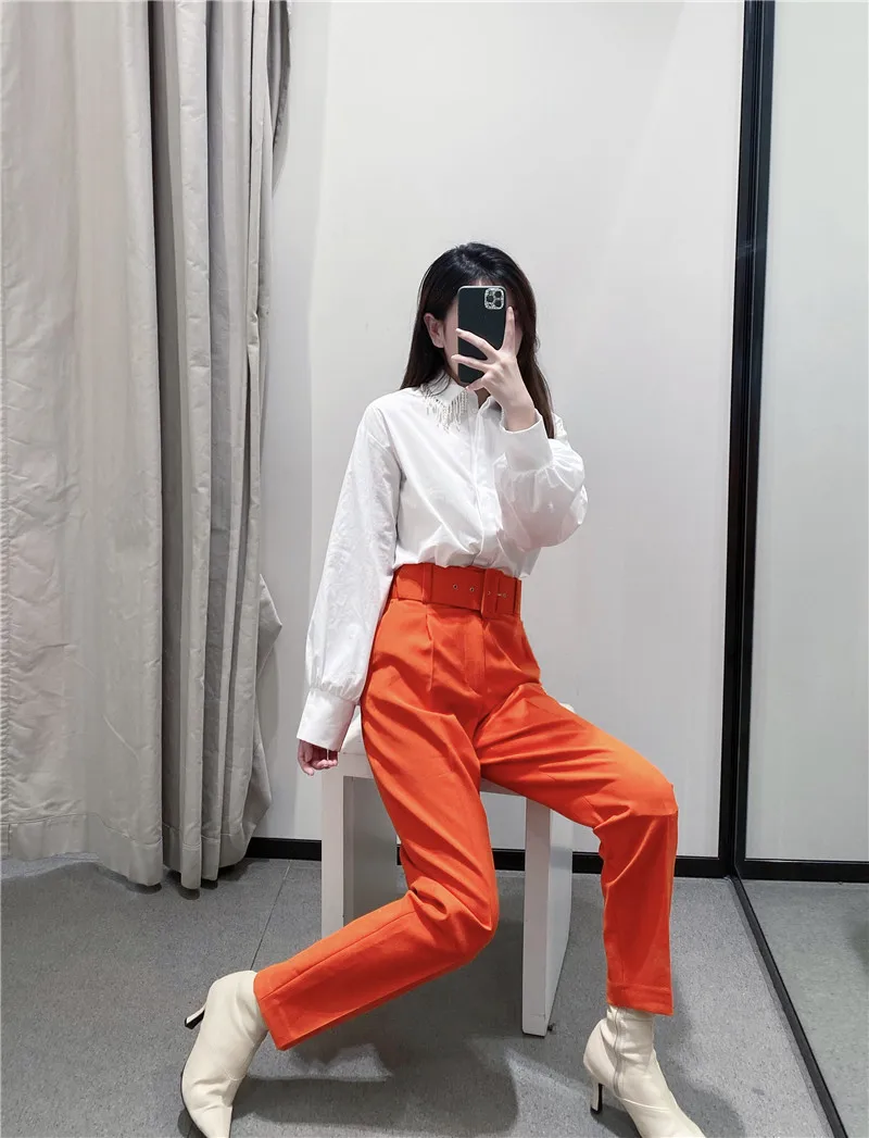 Женские шаровары с высокой талией ZA, повседневные однотонные желты...