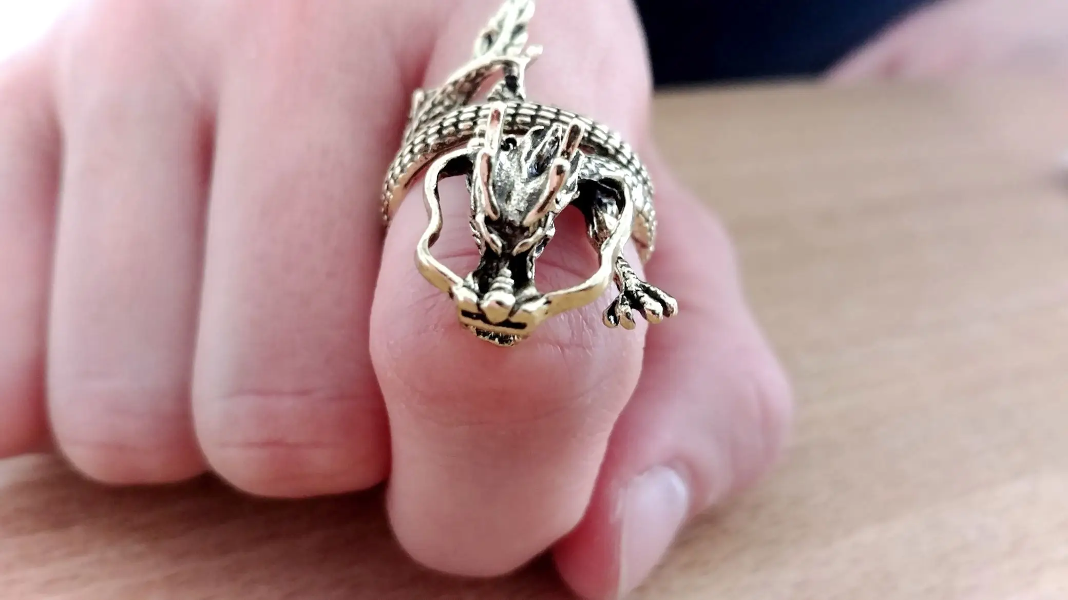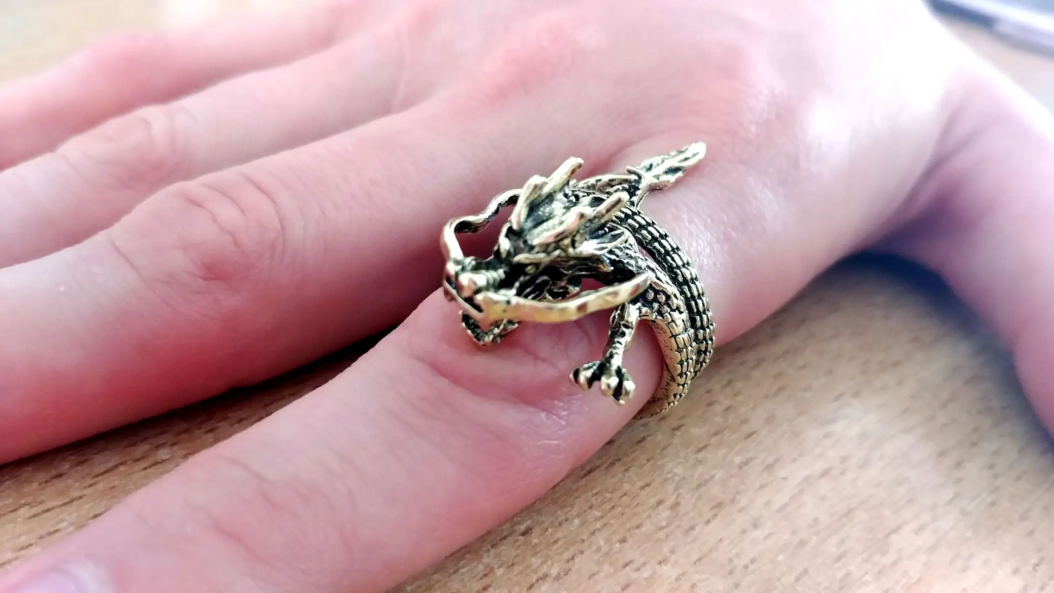 Кольцо с подвеской в виде дракона, в готическом стиле, золотого цвета, кольца для мужчин в стиле панк
