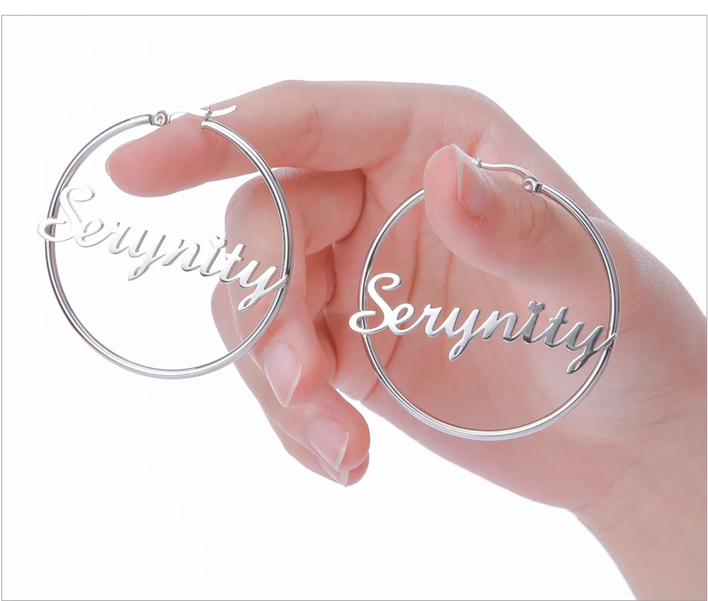 Индивидуальные серьги-кольца Lucktune с именем для женщин и девушек, большие серьги-подвески с именем, ювелирные изделия из нержавеющей стали, подарок Вечерние