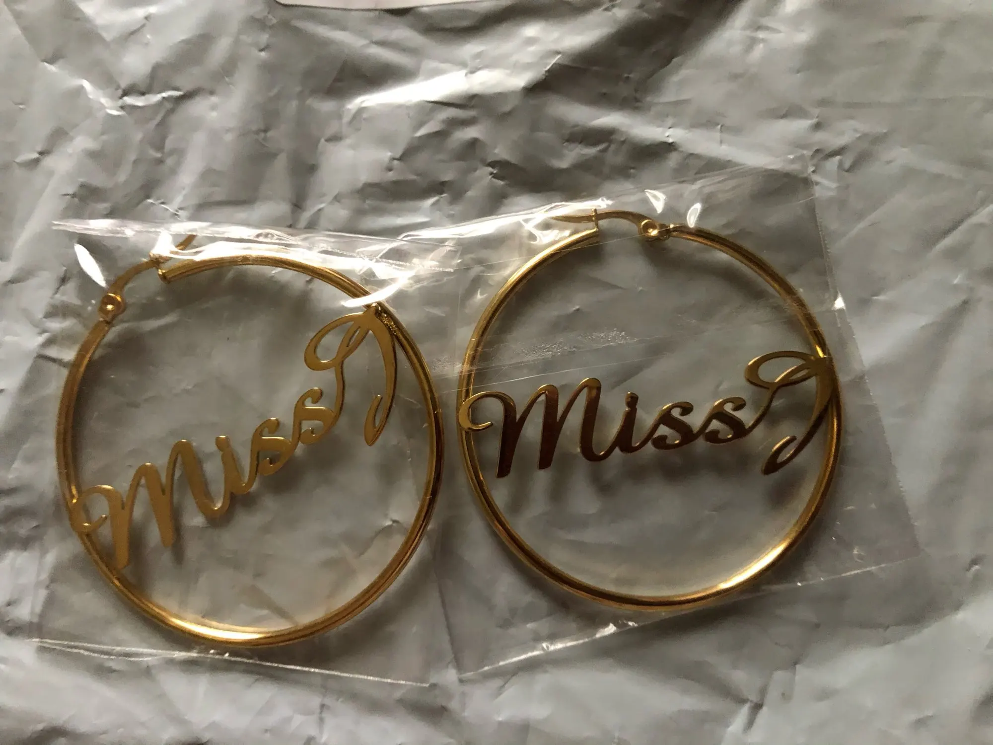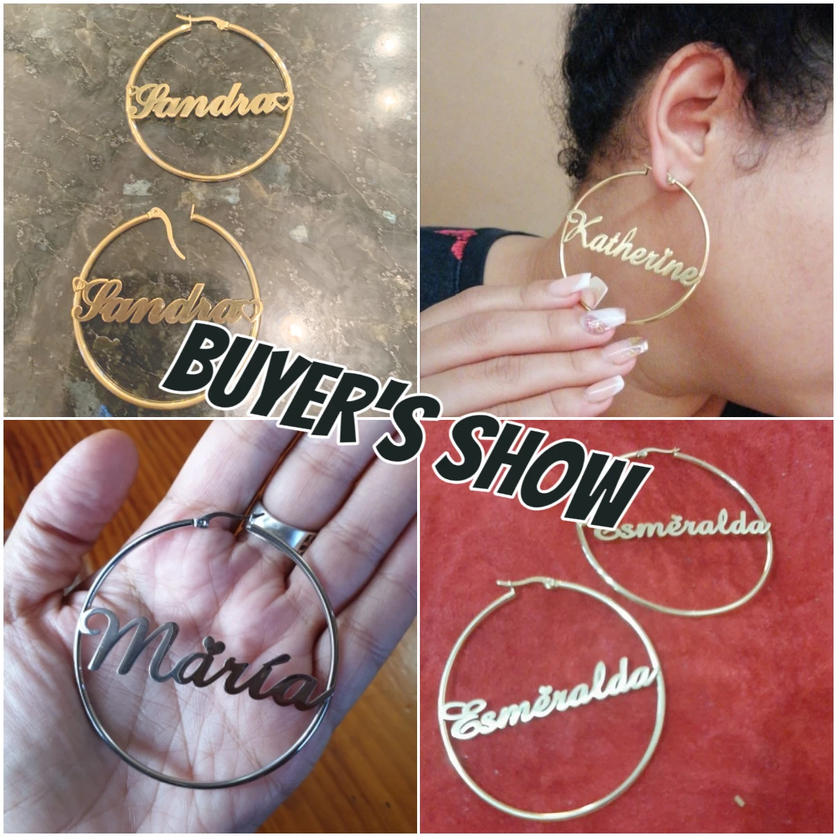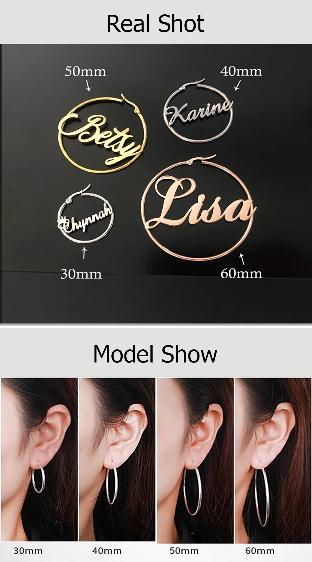 Lucktune Персонализированные Пользовательское имя серьги из нержавеющей стали большой обод кольцо табличка ювелирные изделия для женщин Девушка Свадебная вечеринка хип-хоп