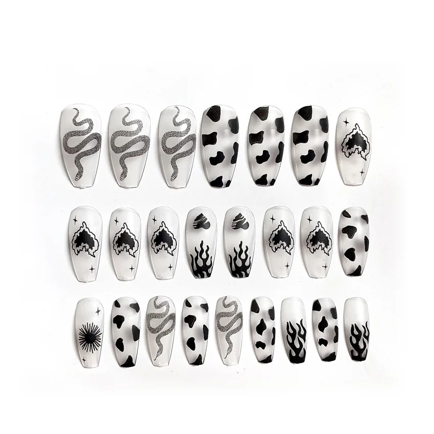 24 шт.корт. С клеем 2 г, накладные ногти средней длины в черном гробе, накладные ногти, акриловые носимые накладные ногти с полным покрытием для девочек