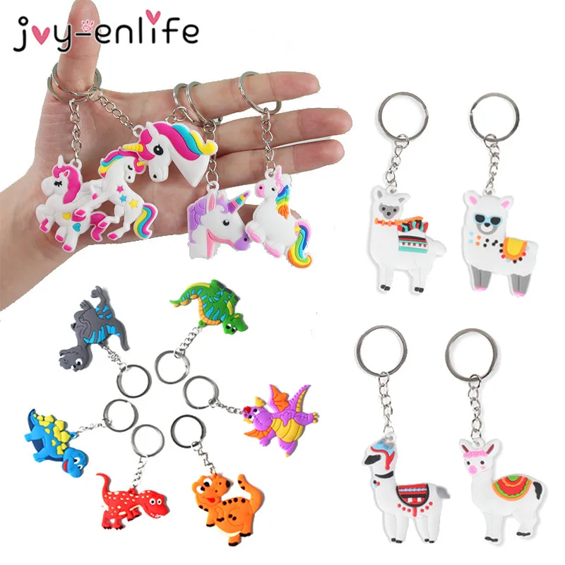 Мультяшный Единорог лама динозавр ПВХ брелок кольцо Дети День Рождения вечерние украшения подарок животное брелок Единорог динозавр вечерние украшения