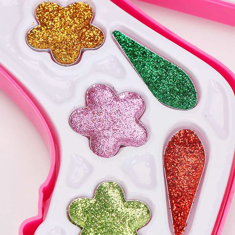 Детский набор хороший. Соответствует фото магазина. Внучка в восторге! Тени, блеск, помада и лак наносятся нормально! Для ребёнка очень даже сойдёт! В Беларусь на нашу почту посылка пришла за 27 дней. Трек-номер отслеживался. К покупке, рекомендую!!!