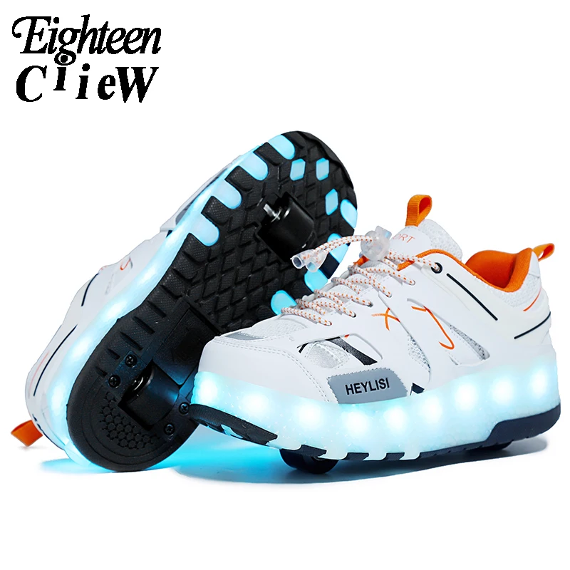 Кроссовки женские светящиеся на колесиках, с зарядным выключателем, легсветильник, размер 28-40