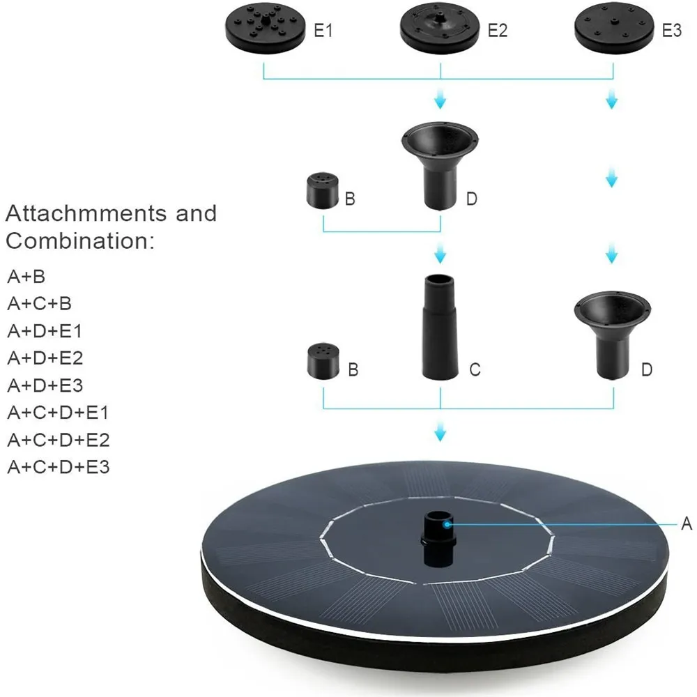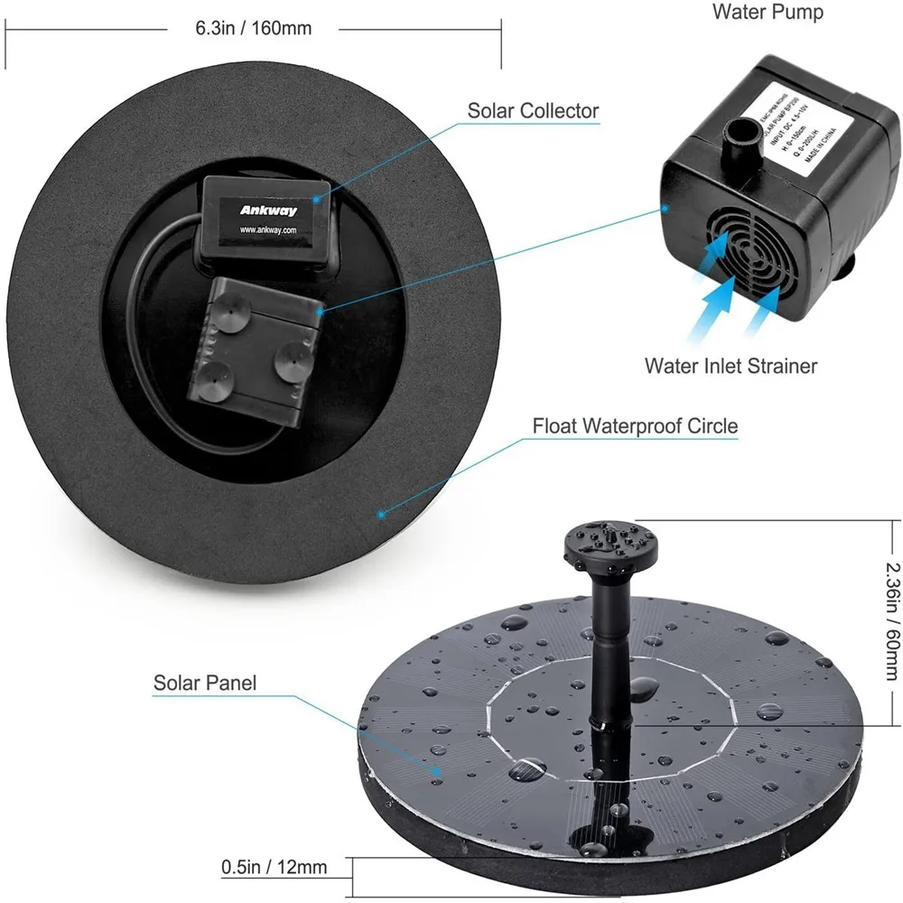 【Легко использовать 】Просто положите насос на воду. После того, как солнечная панель получит достаточное количество солнечного света, она будет автоматически работать. Фонтан будет работать лучше, когда солнечная панель получит более яркий солнечный свет.