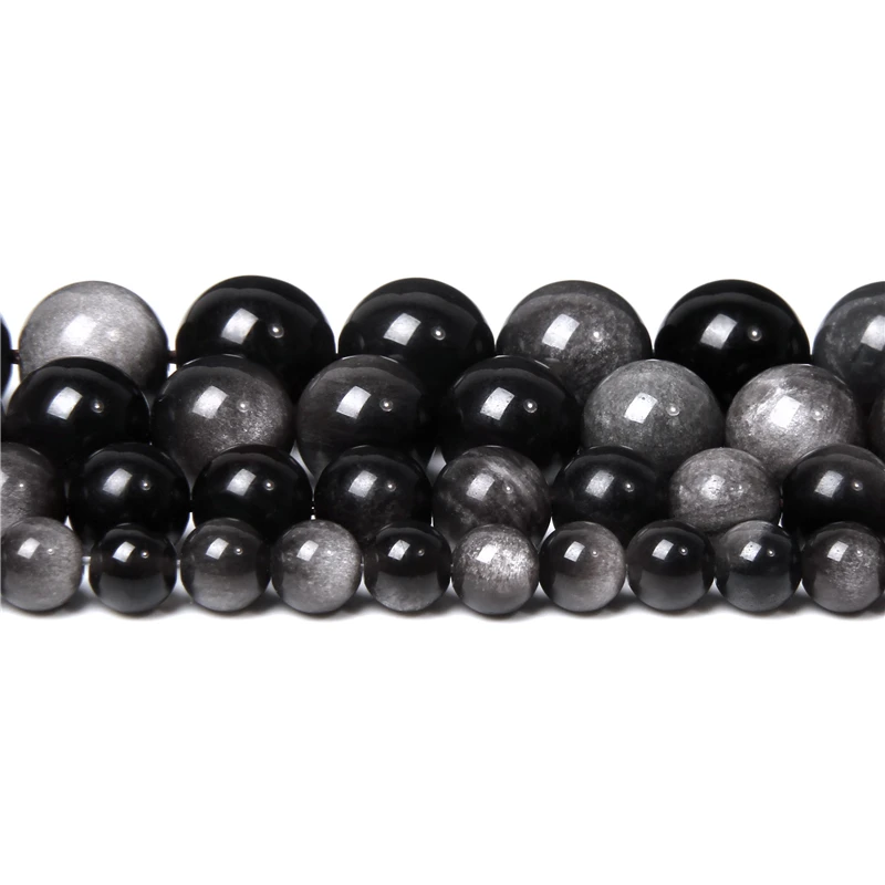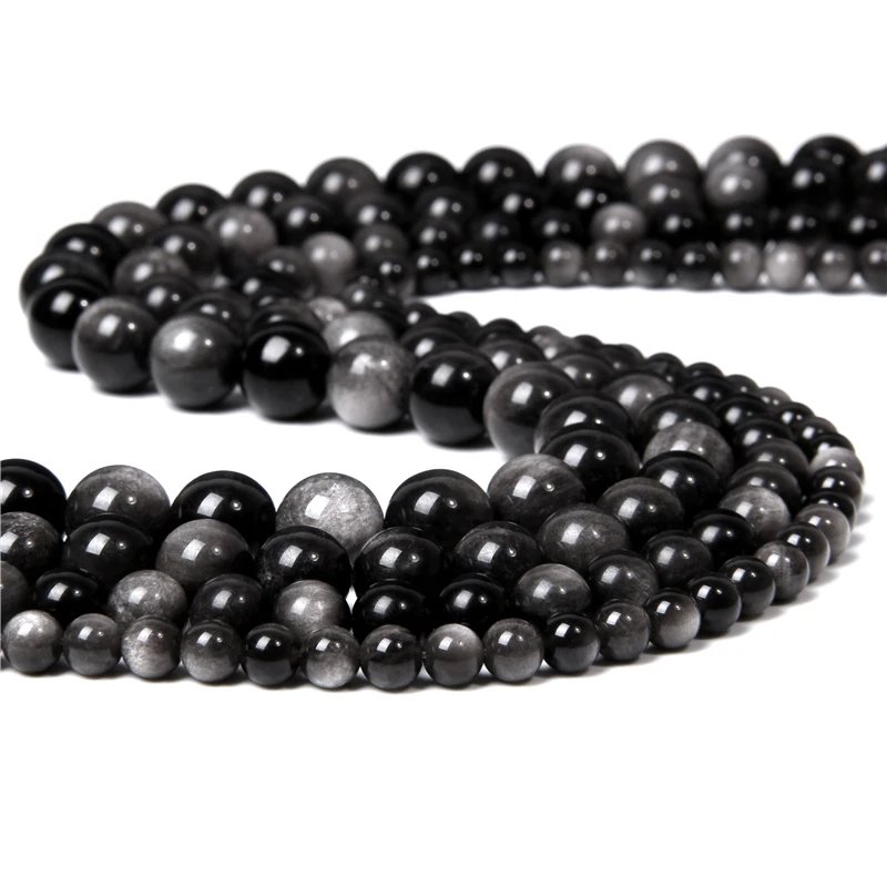 Бусины Из Натурального серебряного обсидиана для изготовления ювелирных изделий, аксессуары для рукоделия, свободные минеральный драгоценный камень, каменные бусины, мужской подарок