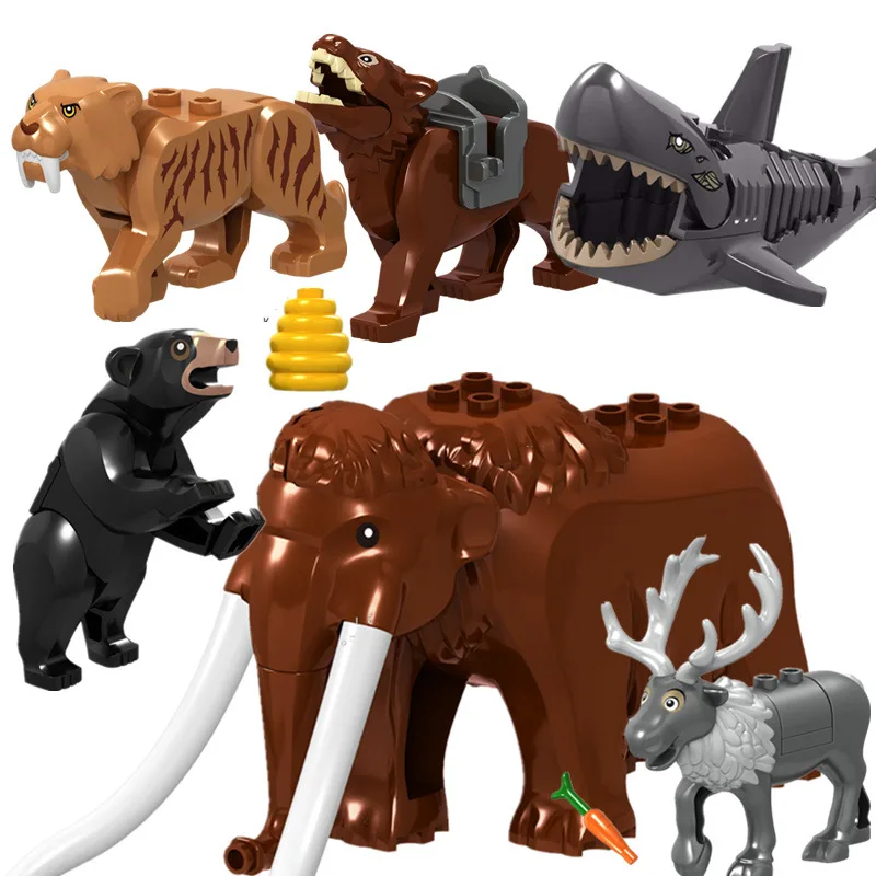 2021 Набор строительных блоков Животных, корова, крупный рогатого скота, Акула, лось, мамонт, пантера, тигр, модели строительных блоков, детские игрушки
