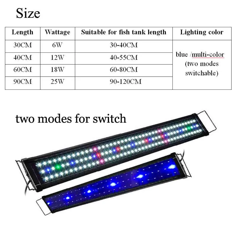 Продукт: аквариумный светильник с вилкой для аквариума: ЕС, США, Великобритания длина вилки: 30/40/60/90 см ширина: 12 см напряжение: 12 В Материал: ПВХ Применение: светильник для аквариума пакет украшения в комплекте: 1 светодиодсветильник для аквариумов