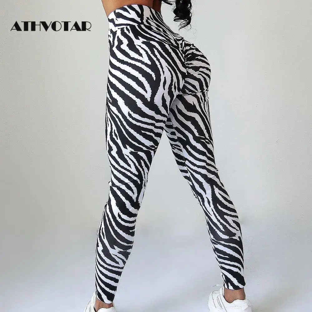 Женские леггинсы для фитнеса с полосками зебры, быстросохнущие эластичные облегающие брюки с высокой талией для тренировок