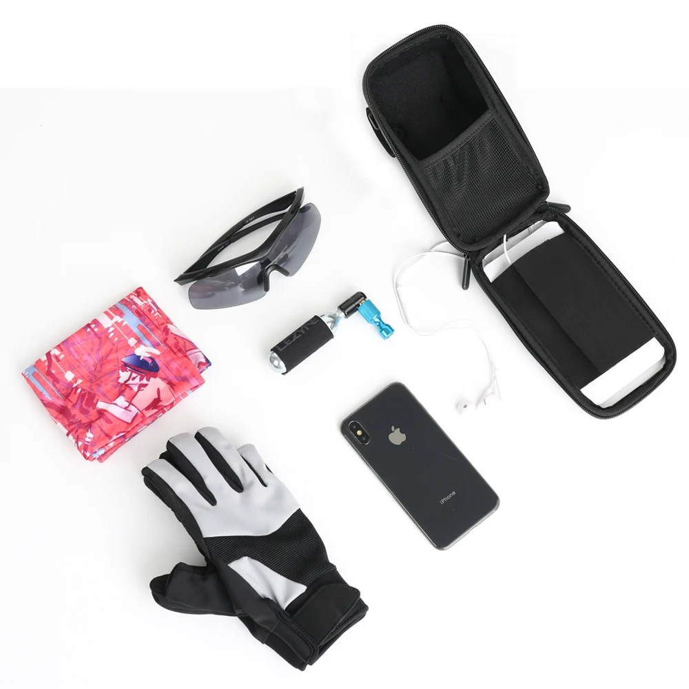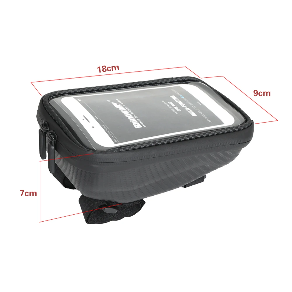 Вместительная сумка, хорошее качество. Мне подходят солнцезащитные очки и небольшой инструмент bianchi. Мой iPhone 7 также подходит. Сенсорная система не слишком плоха через пластиковый экран, но мне все еще нужно было вынуть телефон, чтобы иметь возможность установить карту перед ездой. Рекомендовано всем