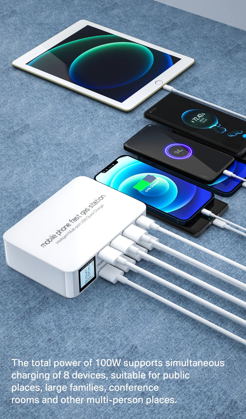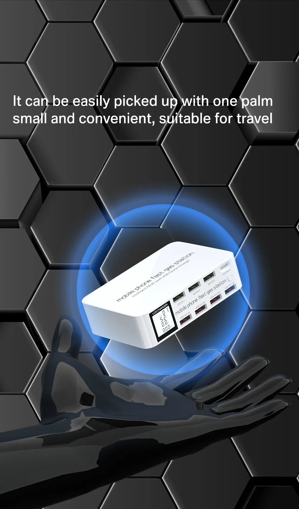 USB-концентратор на 8 портов с цифровым светодиодным дисплеем и поддержкой быстрой зарядки